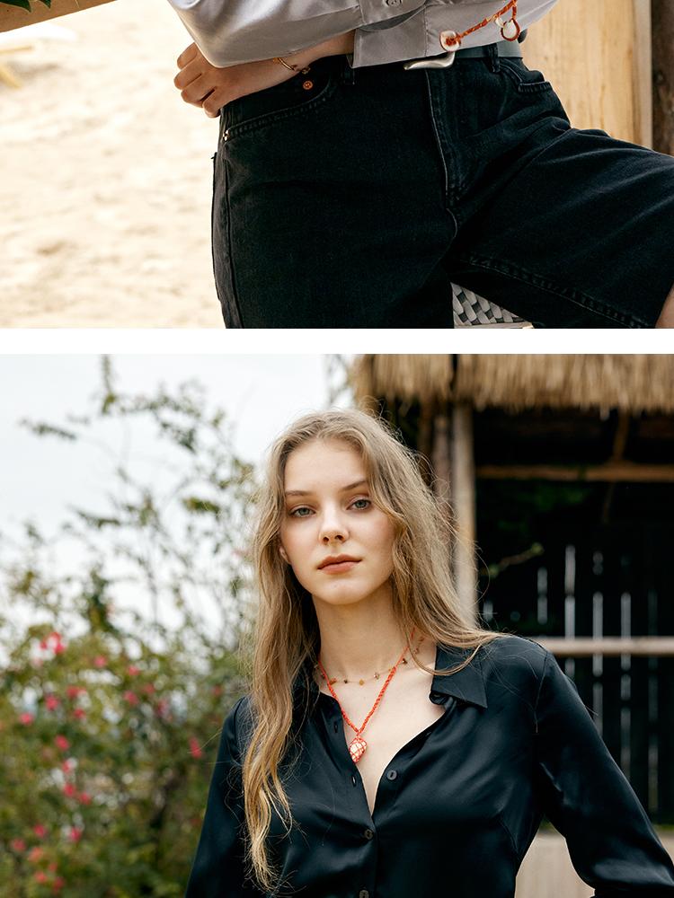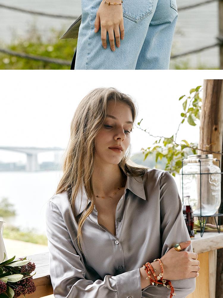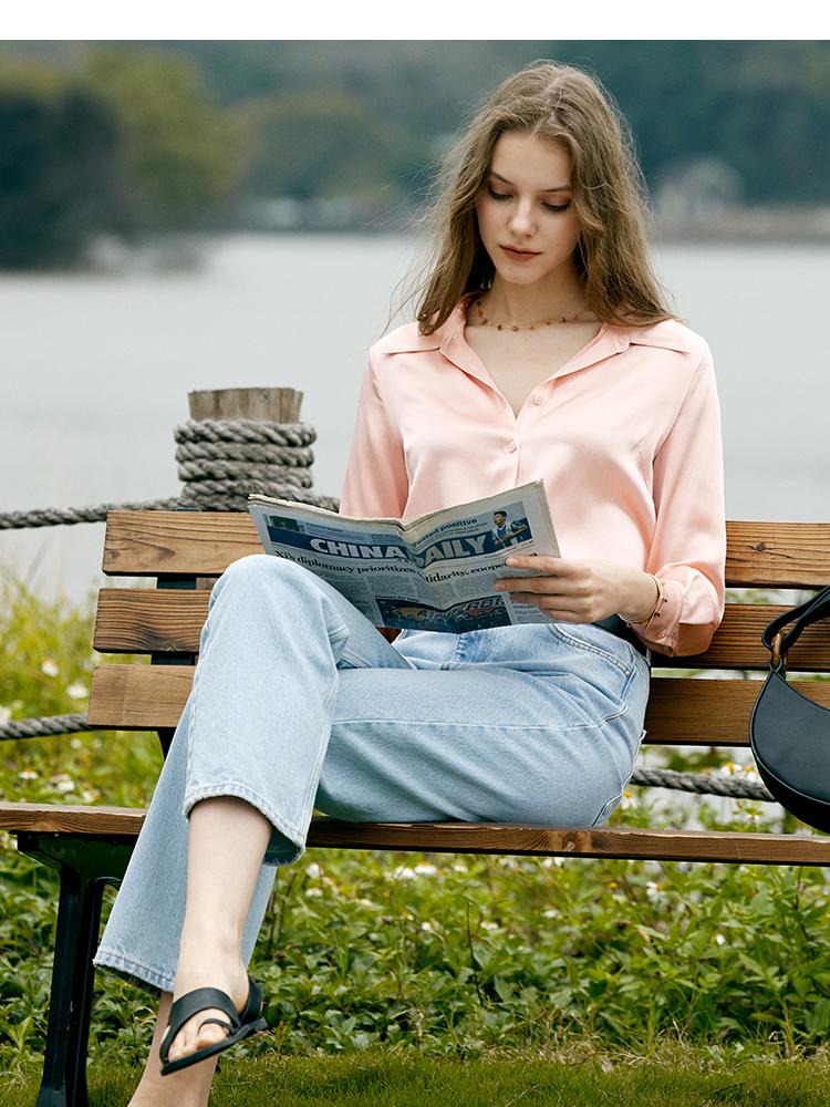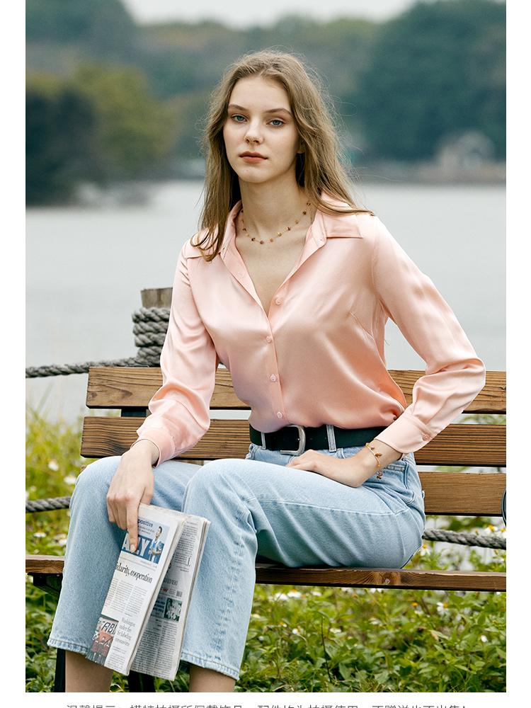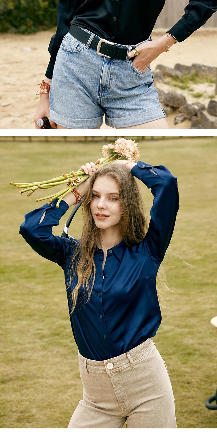 Camisa de Seda Satinada para Mujer 2025 Primavera Nuevo Top de Seda de Morera Pesada de Alta Gama Estilo Maduro Ligero Camisa de Manga Larga