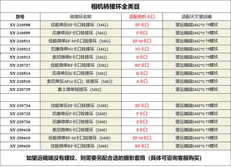 M48 canon slr ef mount xy220724, M48 nikon slr f mount xy220725, M48 nikon mirrorless z mount xy220726, M48 so...