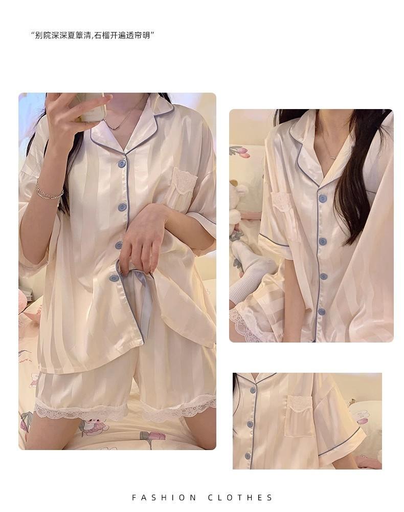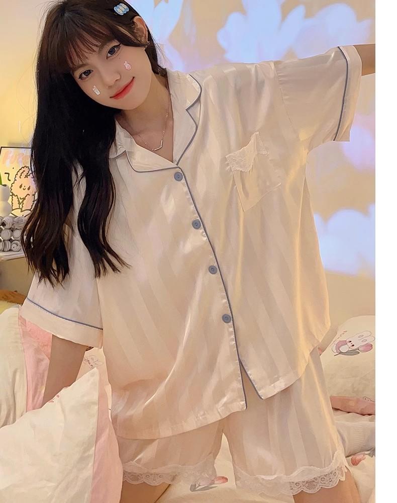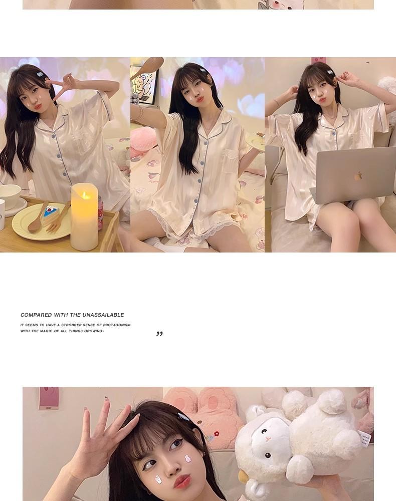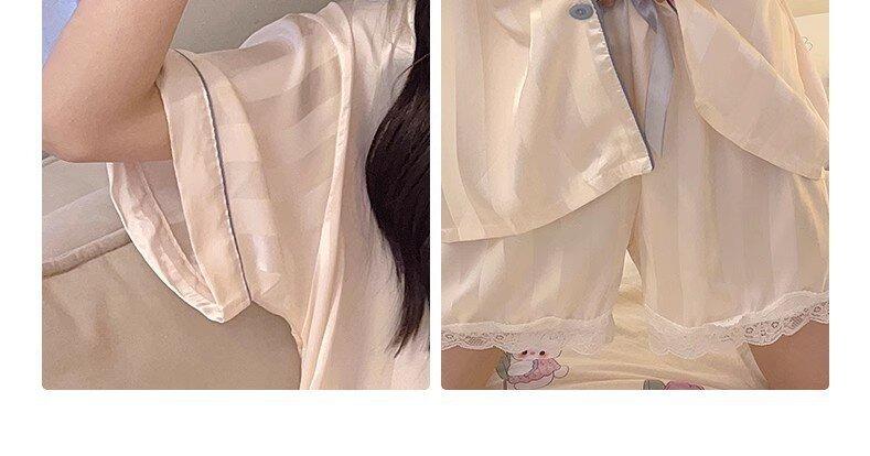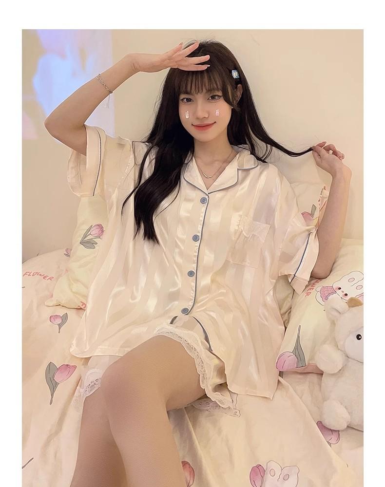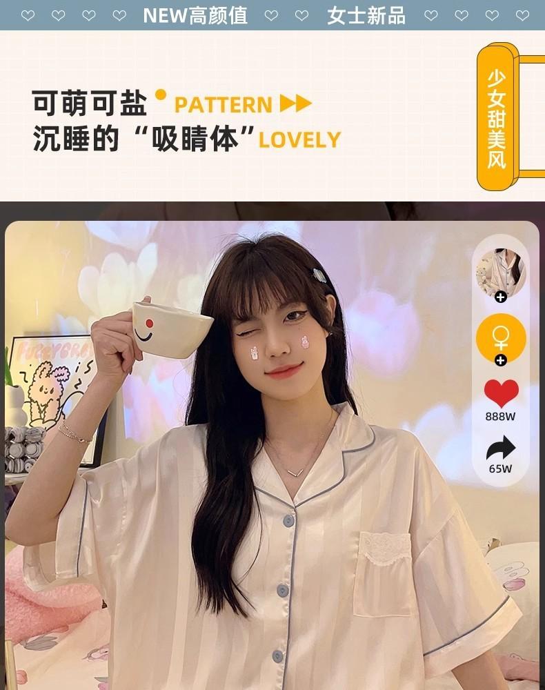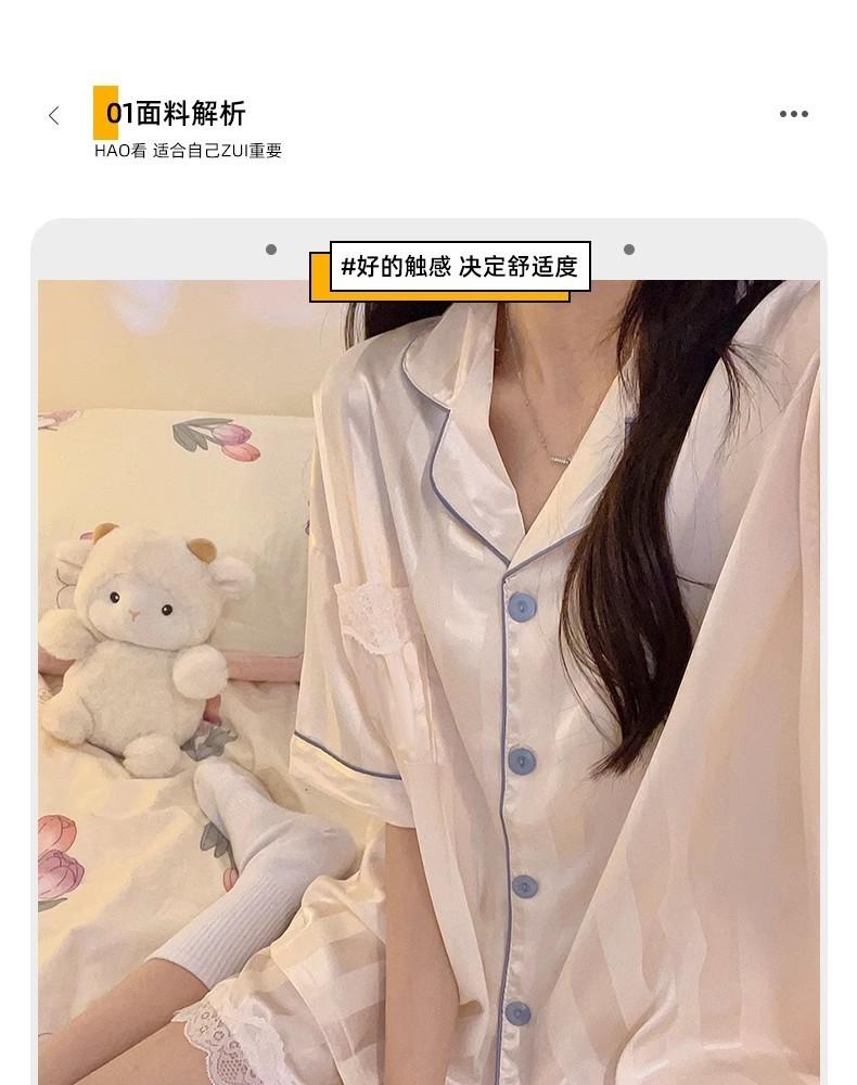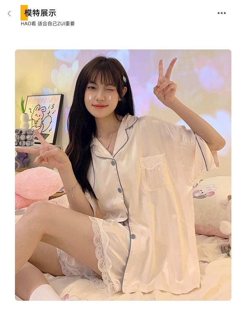 Pijama de Seda de Hielo Fresca de Verano Nueva 2024 de Alta Gama Ropa de Casa Fina de Manga Corta para Estudiantes Ins de Verano para Mujer