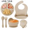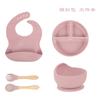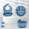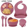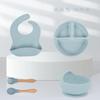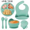 Army Green six-piece set (590g) bib small suction cup bowl silicone fork spoon