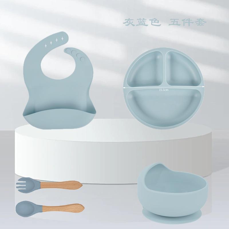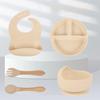 Army green five-piece set (500g) bib small sucker bowl wooden fork spoon