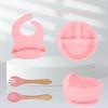 Pink eight-piece set (630g) bib + small suction cup + bowl + straw cup + bear fork + wooden fork and spoon, Lo...