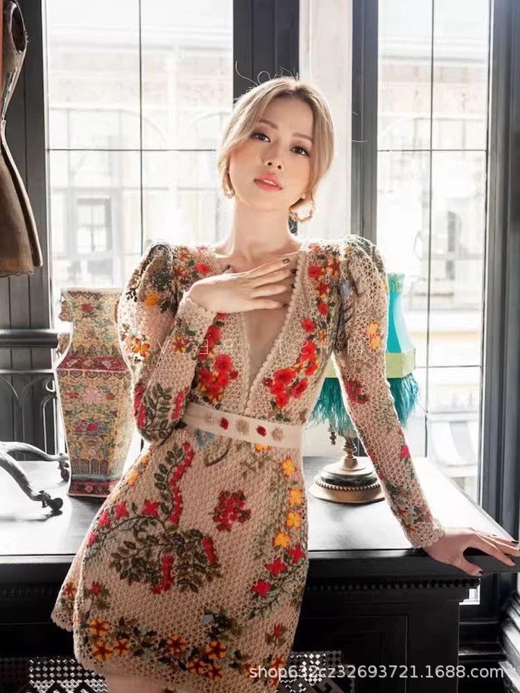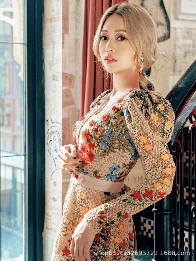 Vestido Estilo Corte Francés vestido de Mujer Nuevo de Alta Gama Lujo Ligero Retro Estilo Occidental Bordado Ajustado Vestido de Banquete