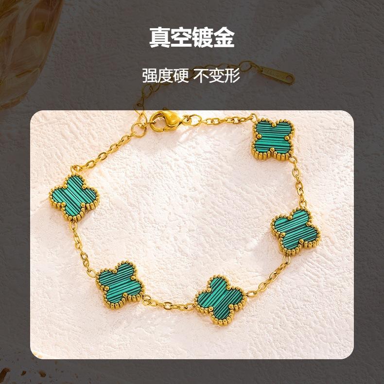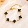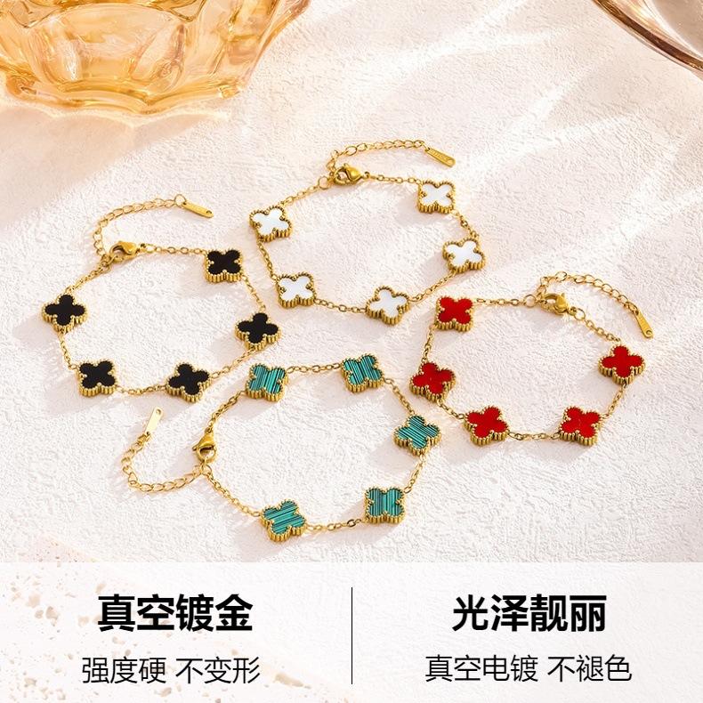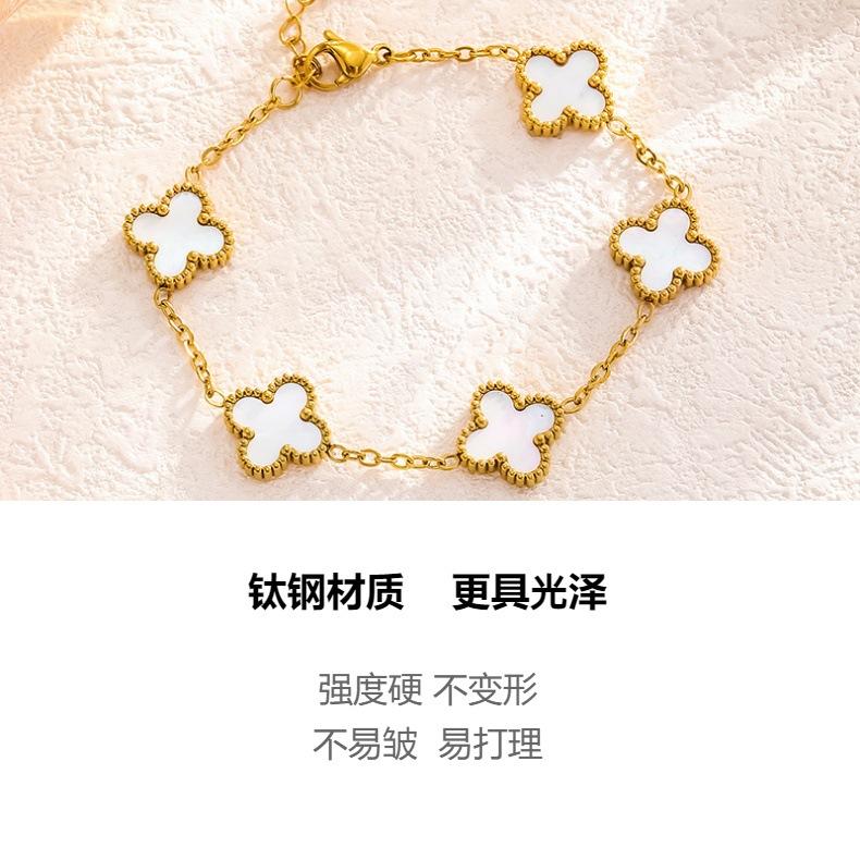 Pulsera de Trébol de Cuatro Hojas de la Suerte de Lujo Ligero de Doble Cara para Mujer Acero de Titanio Simple Moda de Alta Gama Elegante Nicho