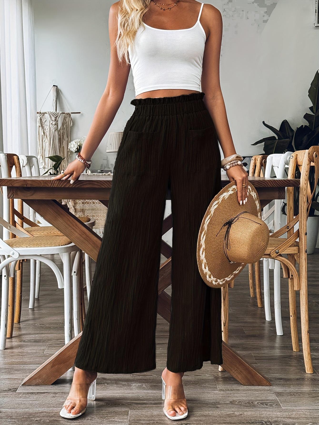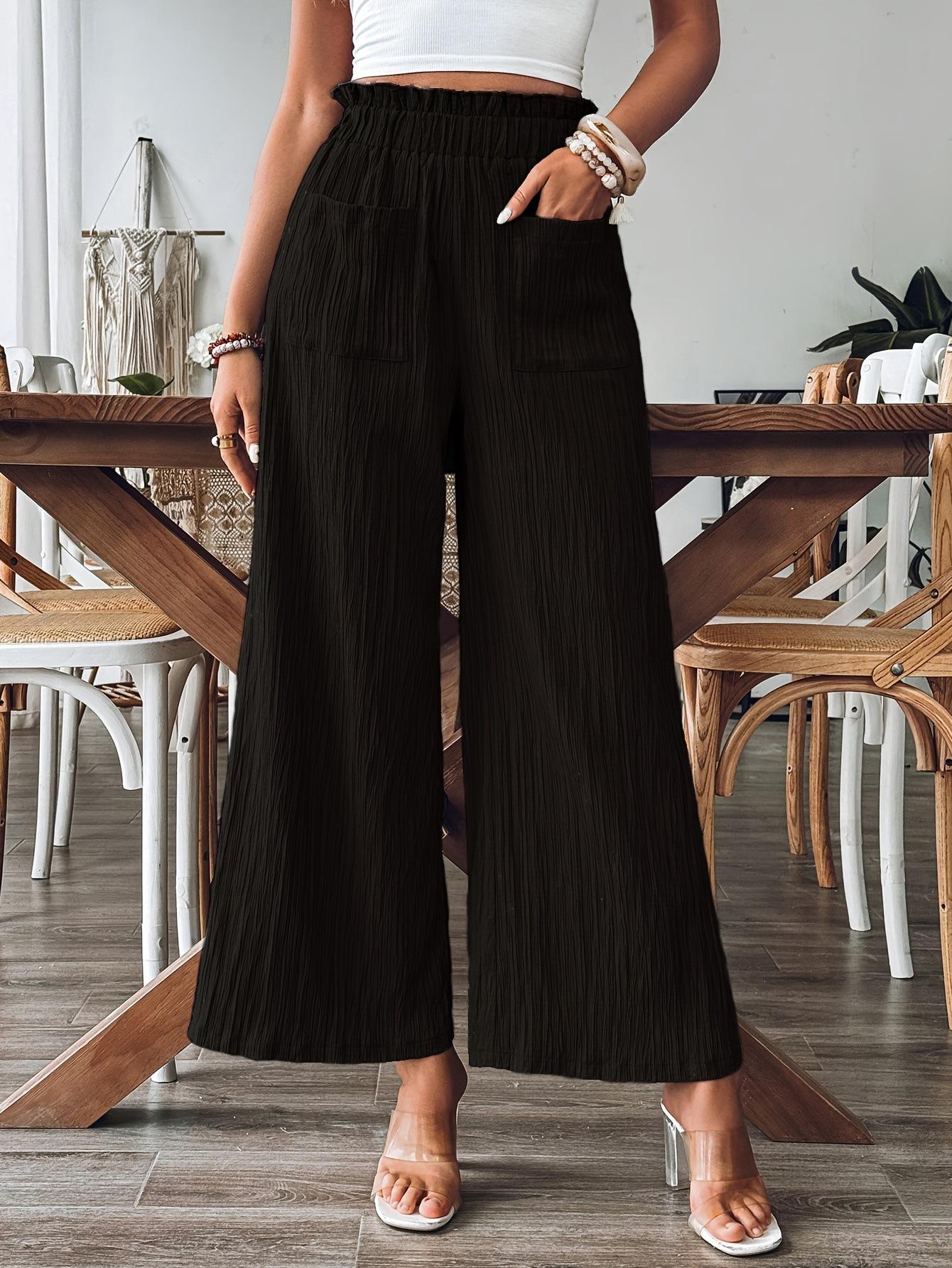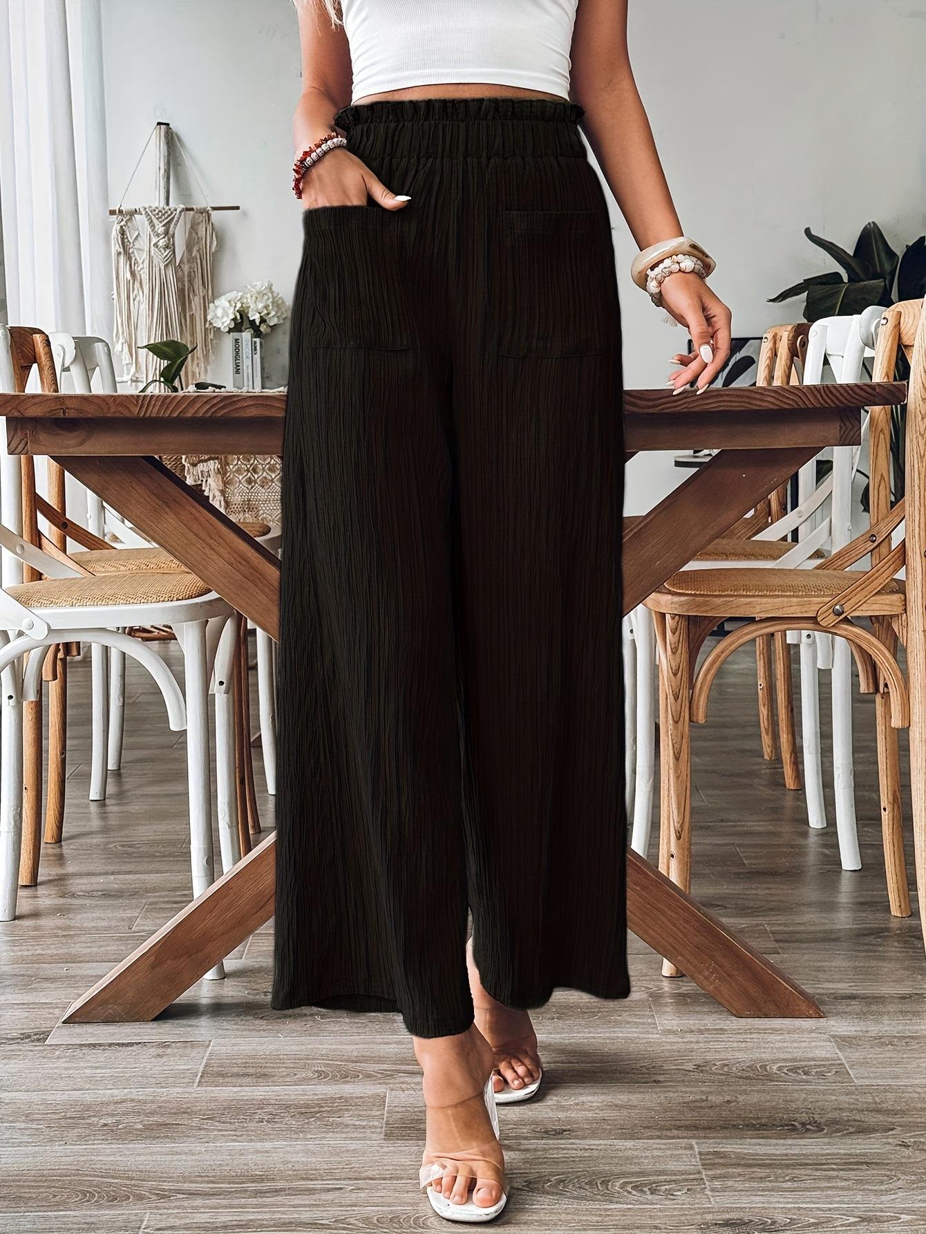 Ropa de mujer transfronteriza europea y americana nueva 2024 Amazon Wish color sólido casual suelto pantalones de pierna ancha pantalones slim en stock