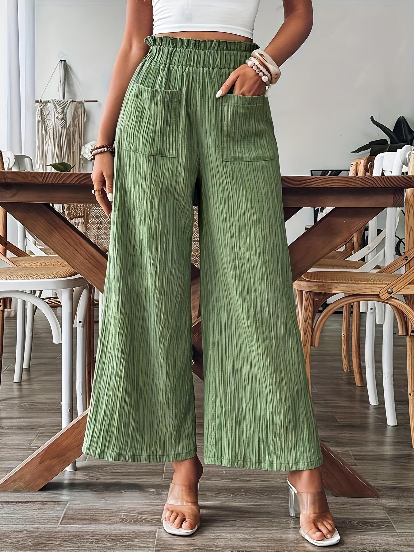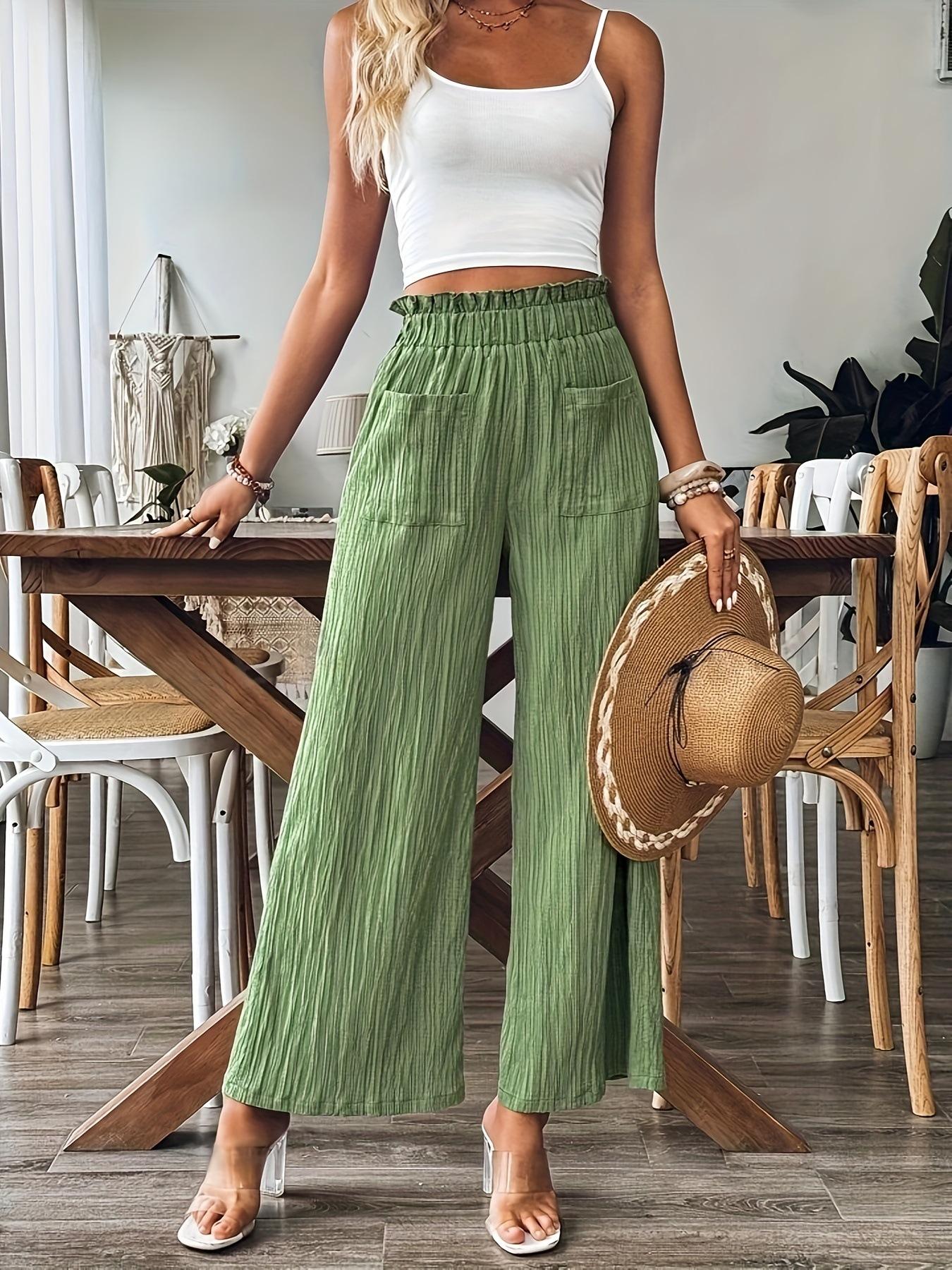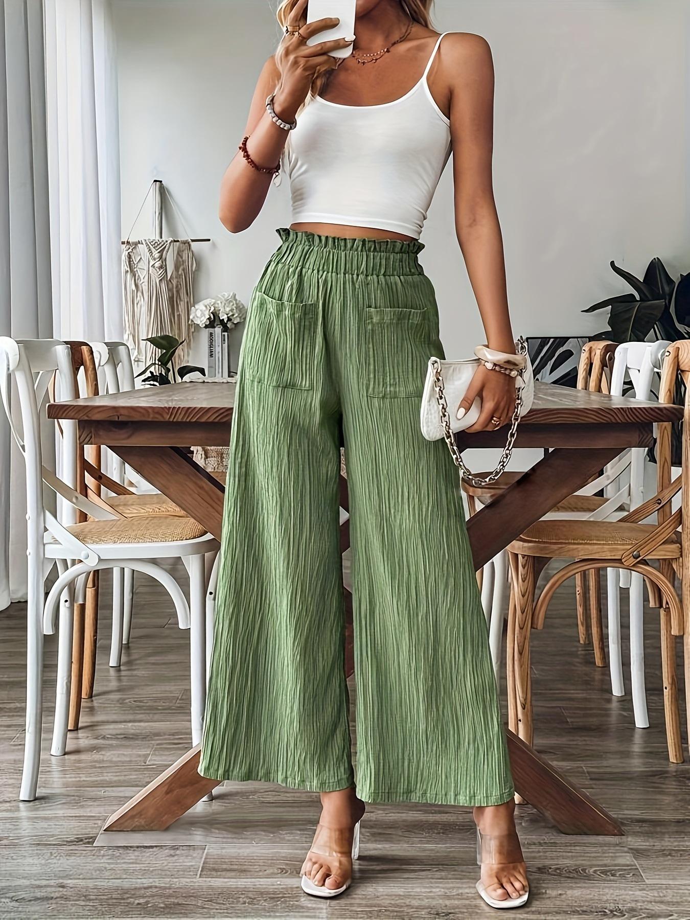 Ropa de mujer transfronteriza europea y americana nueva 2024 Amazon Wish color sólido casual suelto pantalones de pierna ancha pantalones slim en stock