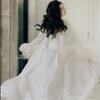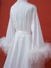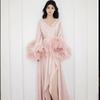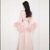Vestido de noche para mujer, de alta gama, para ceremonia de boda, de lujo, blanco, con cola de pelo de avestruz, vestido largo, camisón de dos piezas