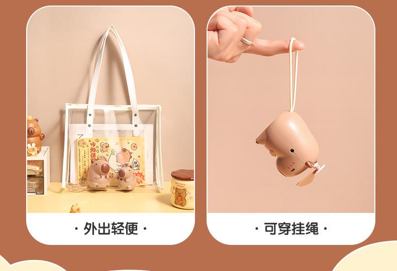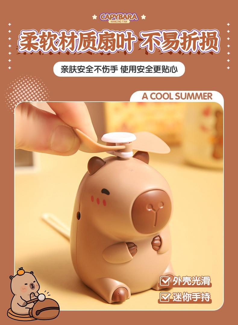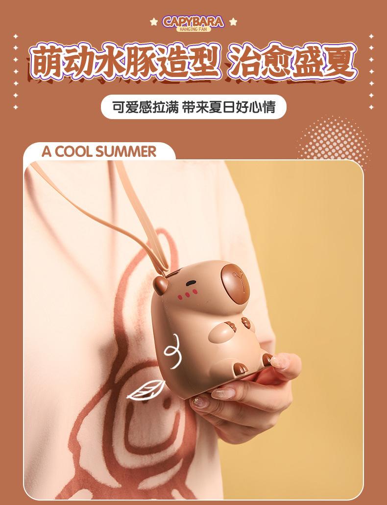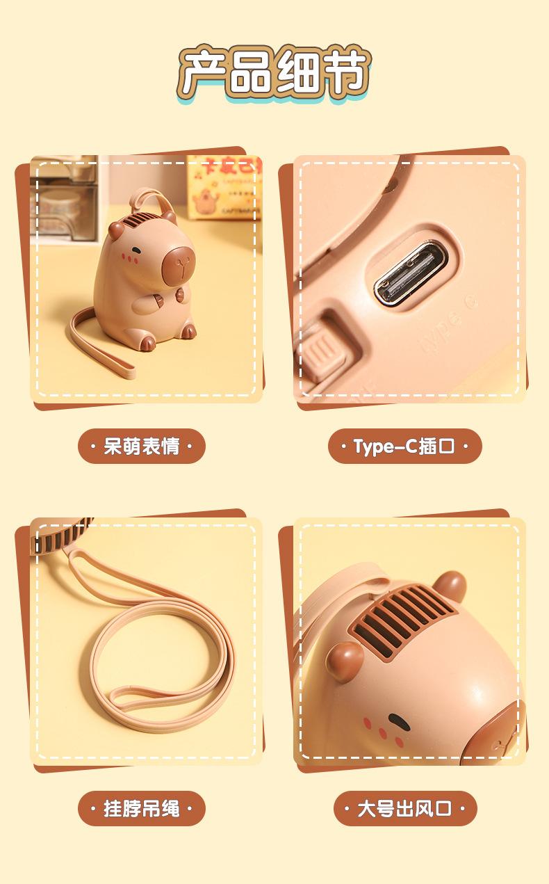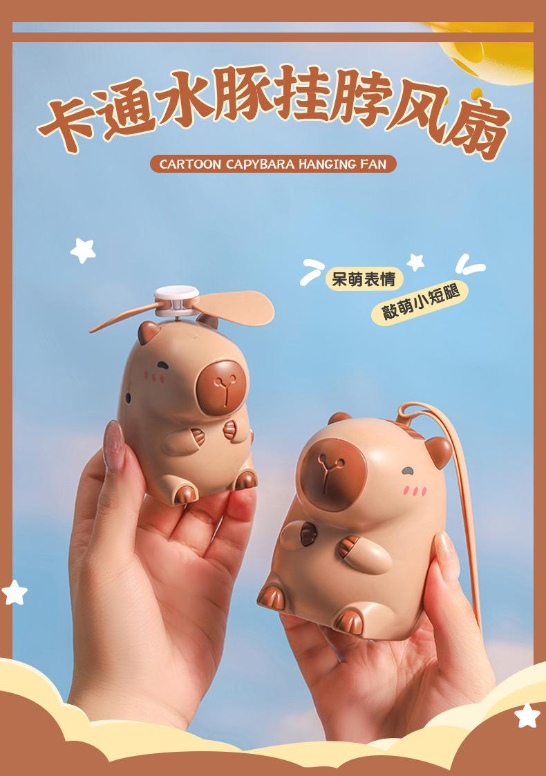 Ventilador de cuello de capibara de dibujos animados lindo lindo lindo ventilador de mano de capibara pequeño ventilador eléctrico pequeño de carga USB