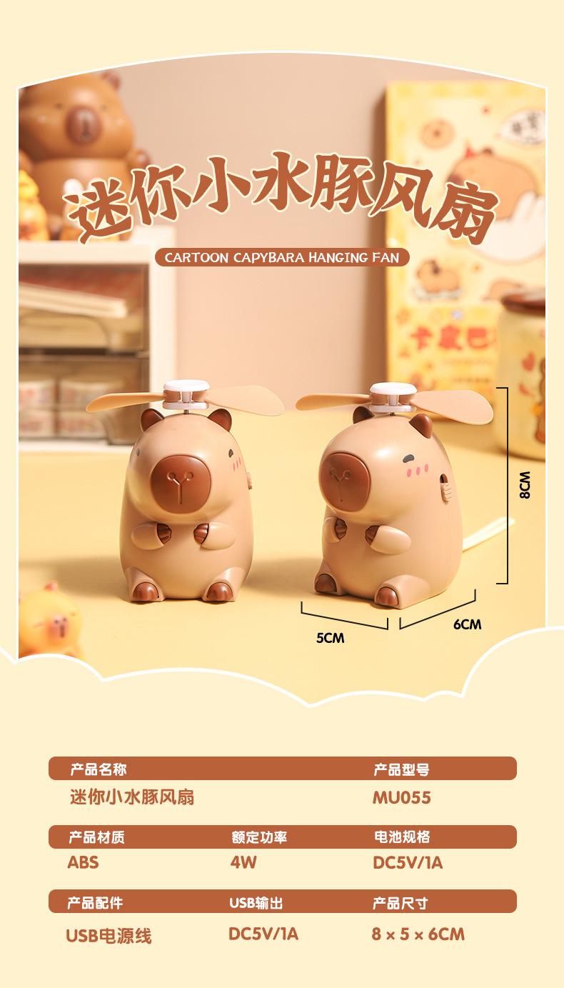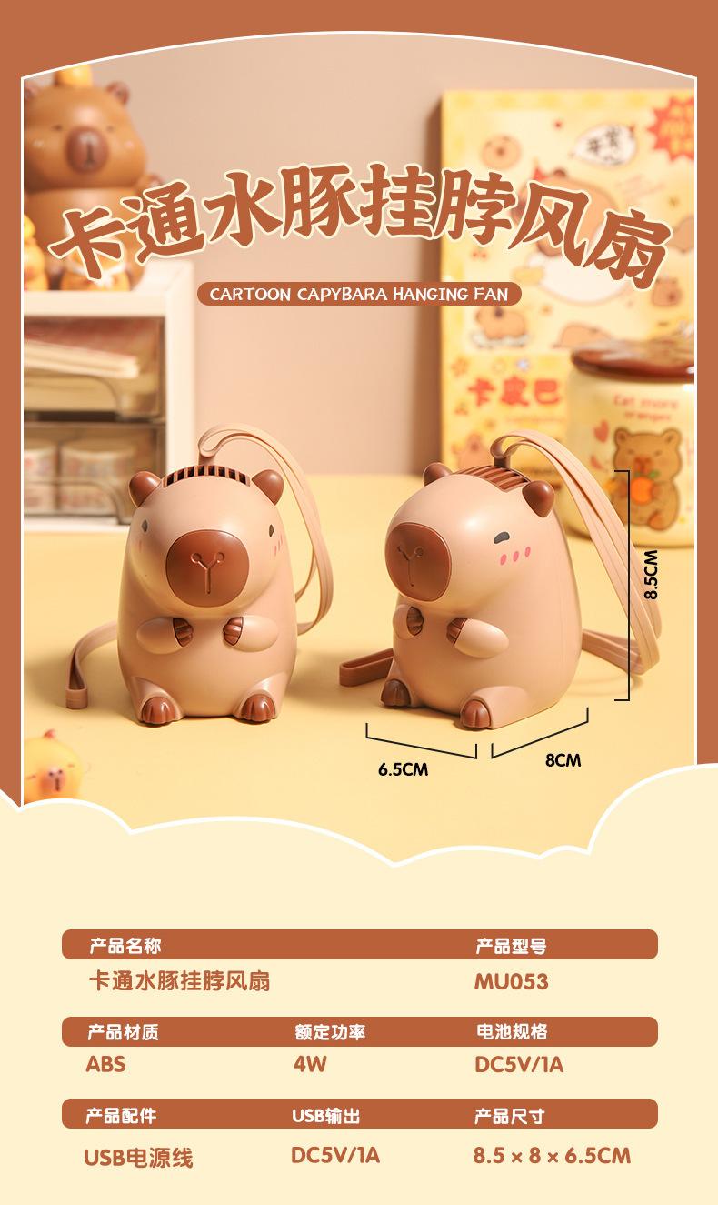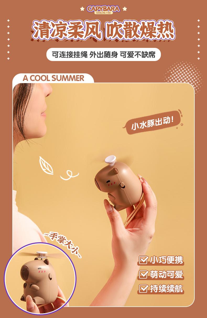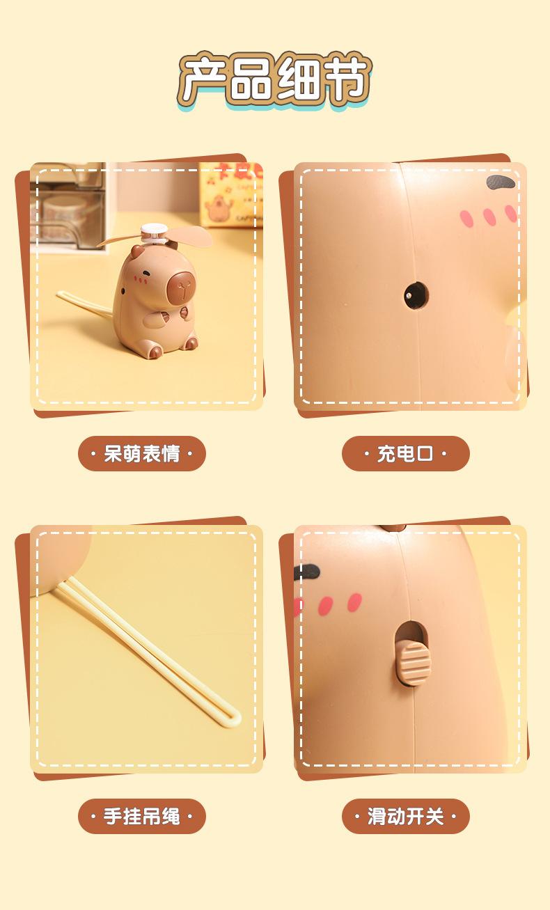Ventilador de cuello de capibara de dibujos animados lindo lindo lindo ventilador de mano de capibara pequeño ventilador eléctrico pequeño de carga USB