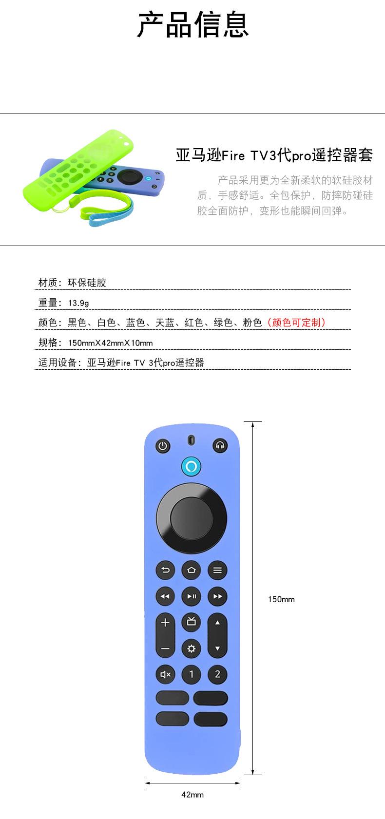 Aplicable a Amazon Alexa Voice Remote Pro Control remoto funda protectora de silicona cubierta resistente a caídas todo incluido