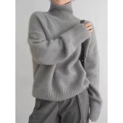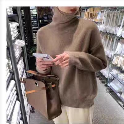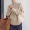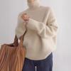 Suéter de punto de cuello alto estilo perezoso para mujer, otoño e invierno, suave, ceroso, color sólido, suelto, interior cómodo, estilo coreano, elegante, para mujer.