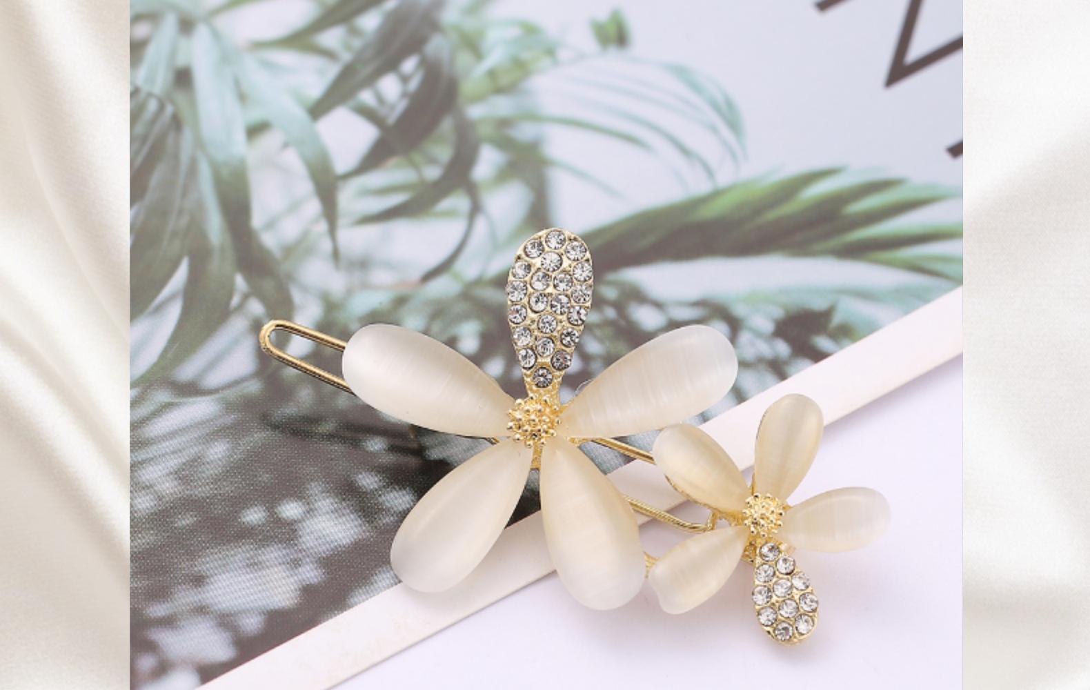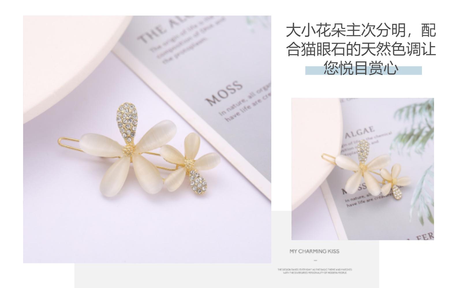 Hebilla de rana accesorios para el cabello Fabricantes de Yiwu venta al por mayor al contado Moda coreana cabello imitación ojo de gato pedrería combinación de colores horquilla de flor