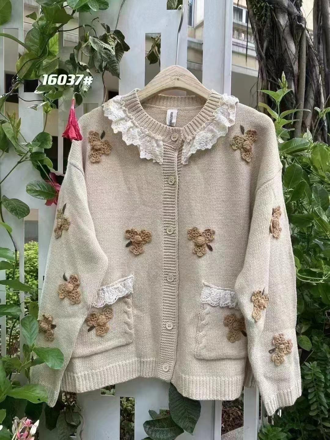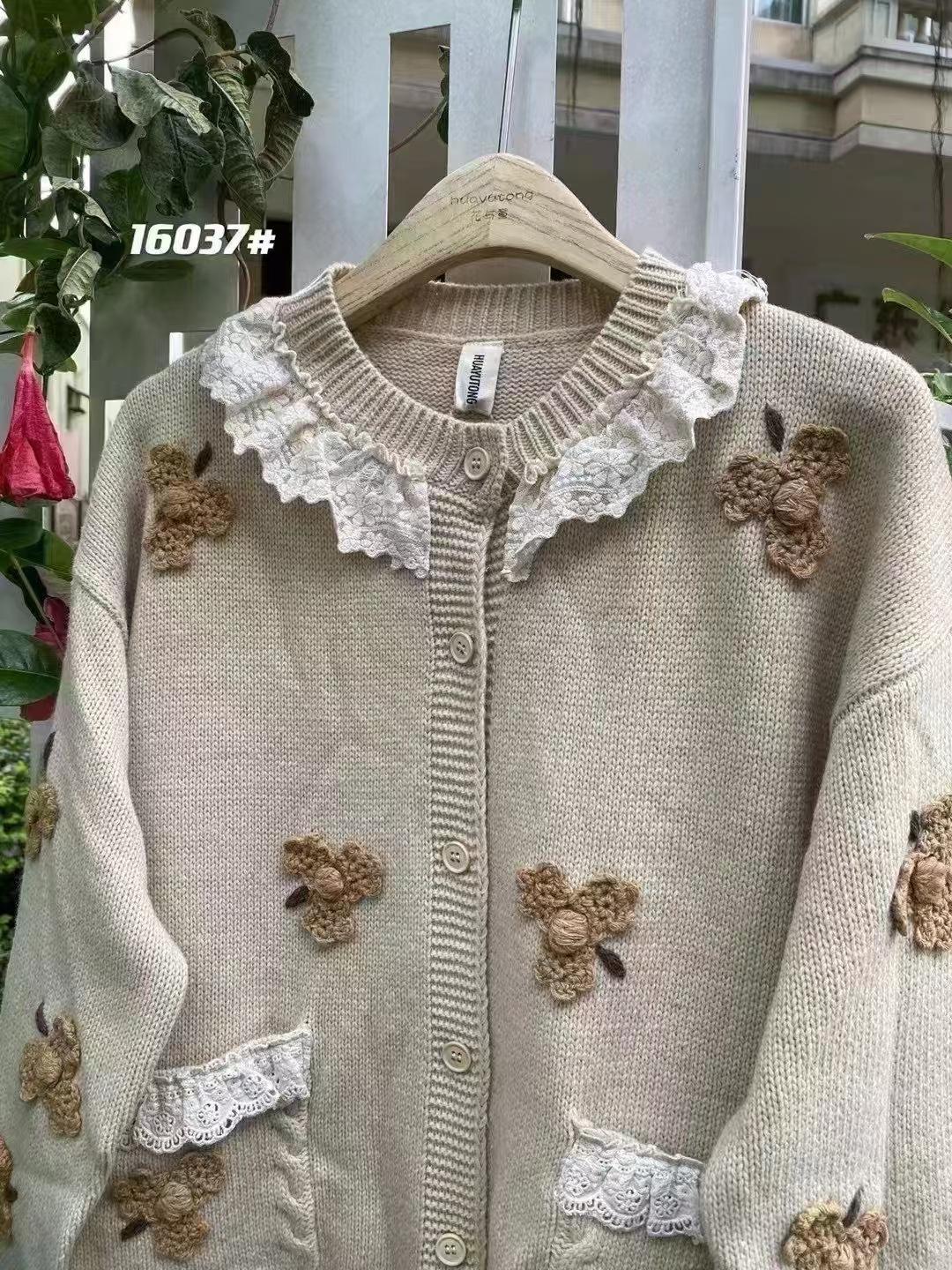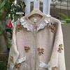 Huimei 2025 Primavera Nuevo Suéter de Punto de Estilo Japonés de Cuello Redondo para Mujer Top de Punto de Estilo Literario de Manga Larga Bordado Estilo Literario