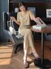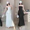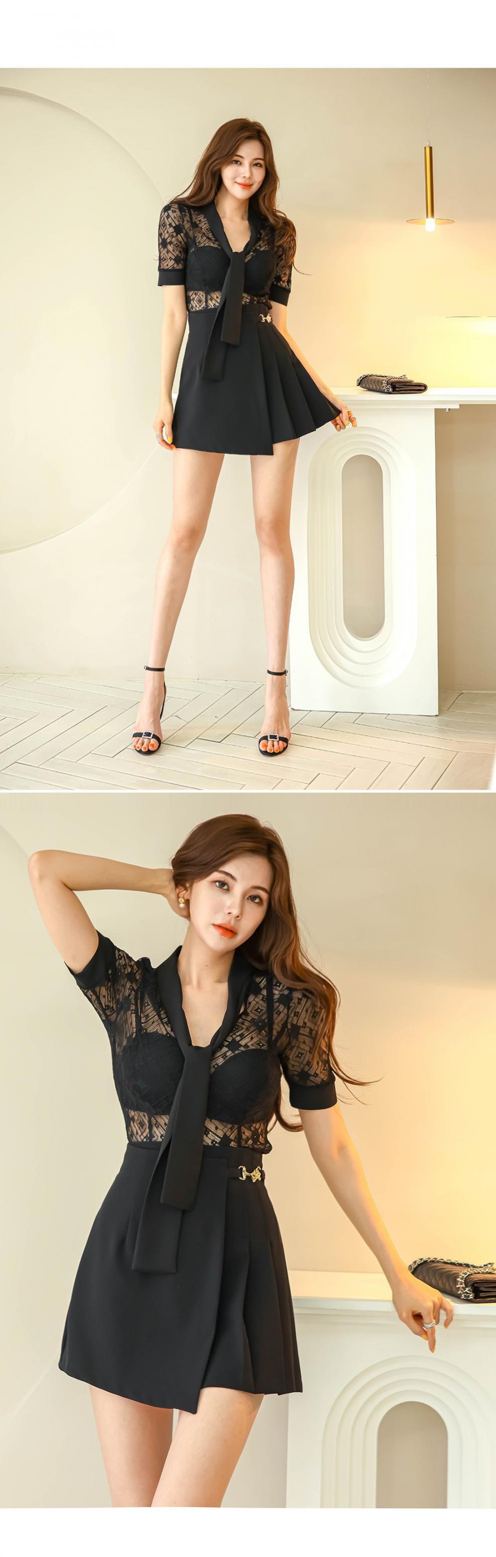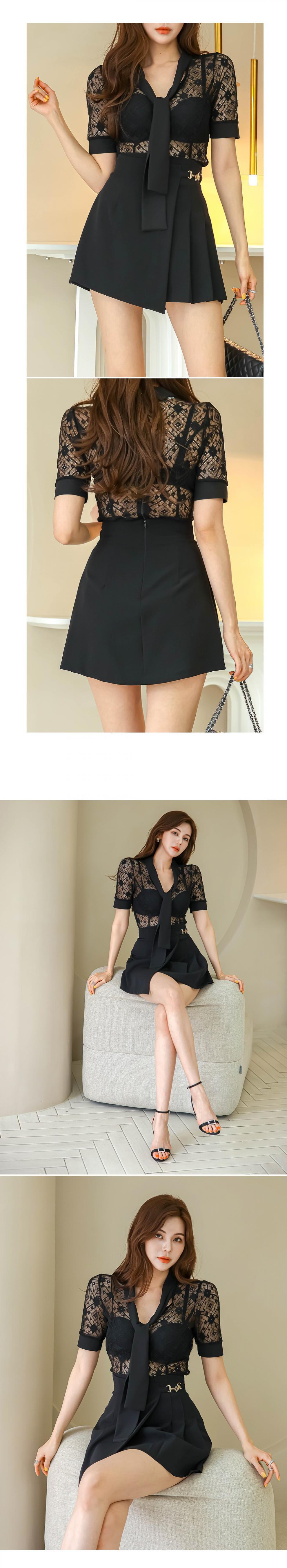 Nuevo Elegante Set de Top de Encaje con Tirantes y Cuello en V con Perspectiva, Hebilla Lateral Cruzada, Falda Plisada en A, Conjunto de Dos Piezas