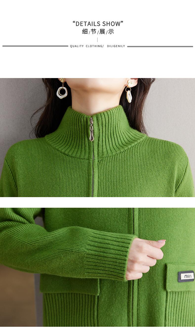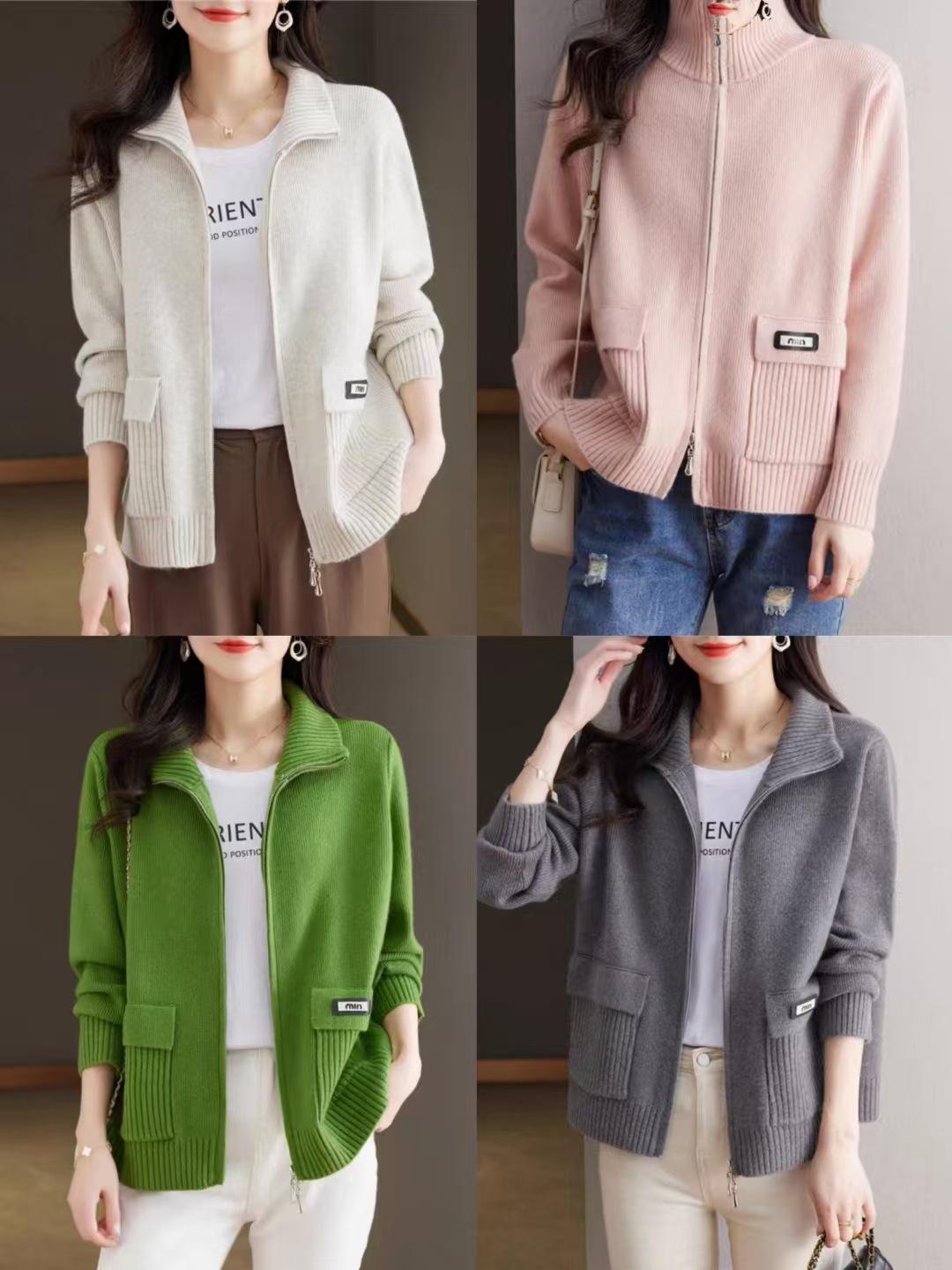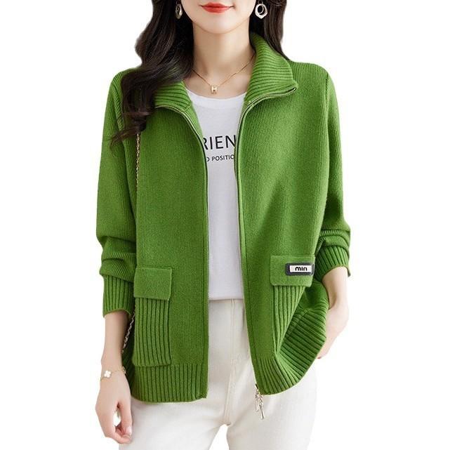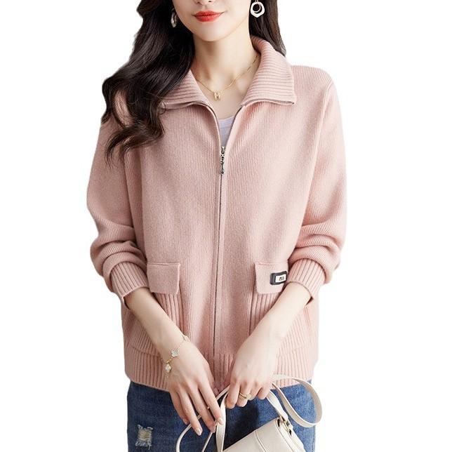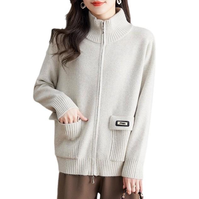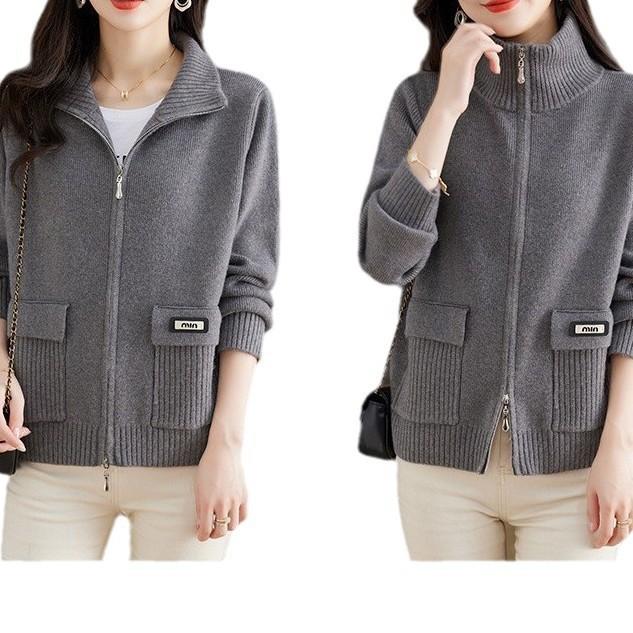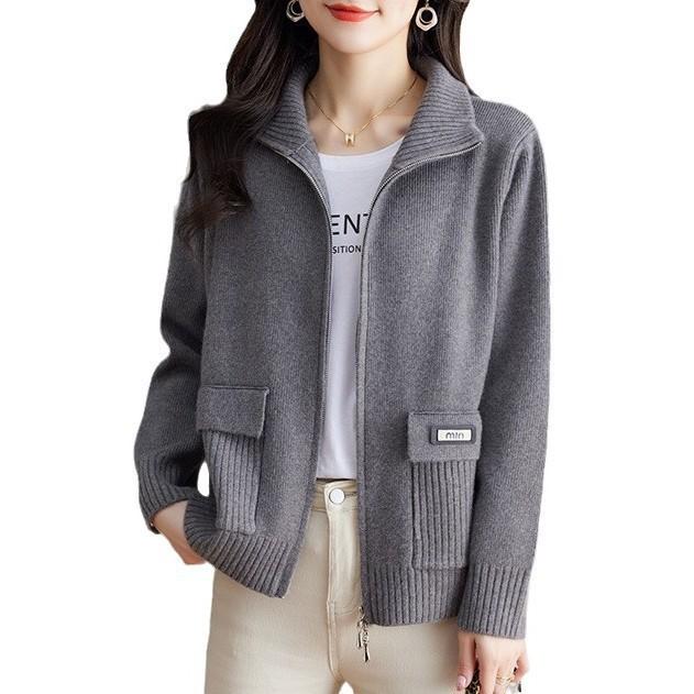 Chaqueta Nueva con Solapa y Cremallera Suéter de Otoño e Invierno para Mujer 2024 Abrigo Cárdigan de Punto con Cuello Alto