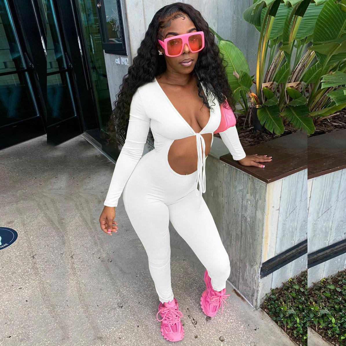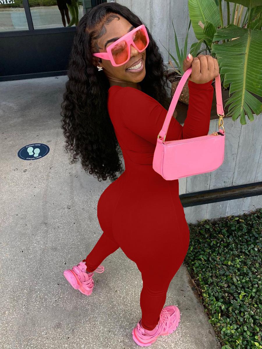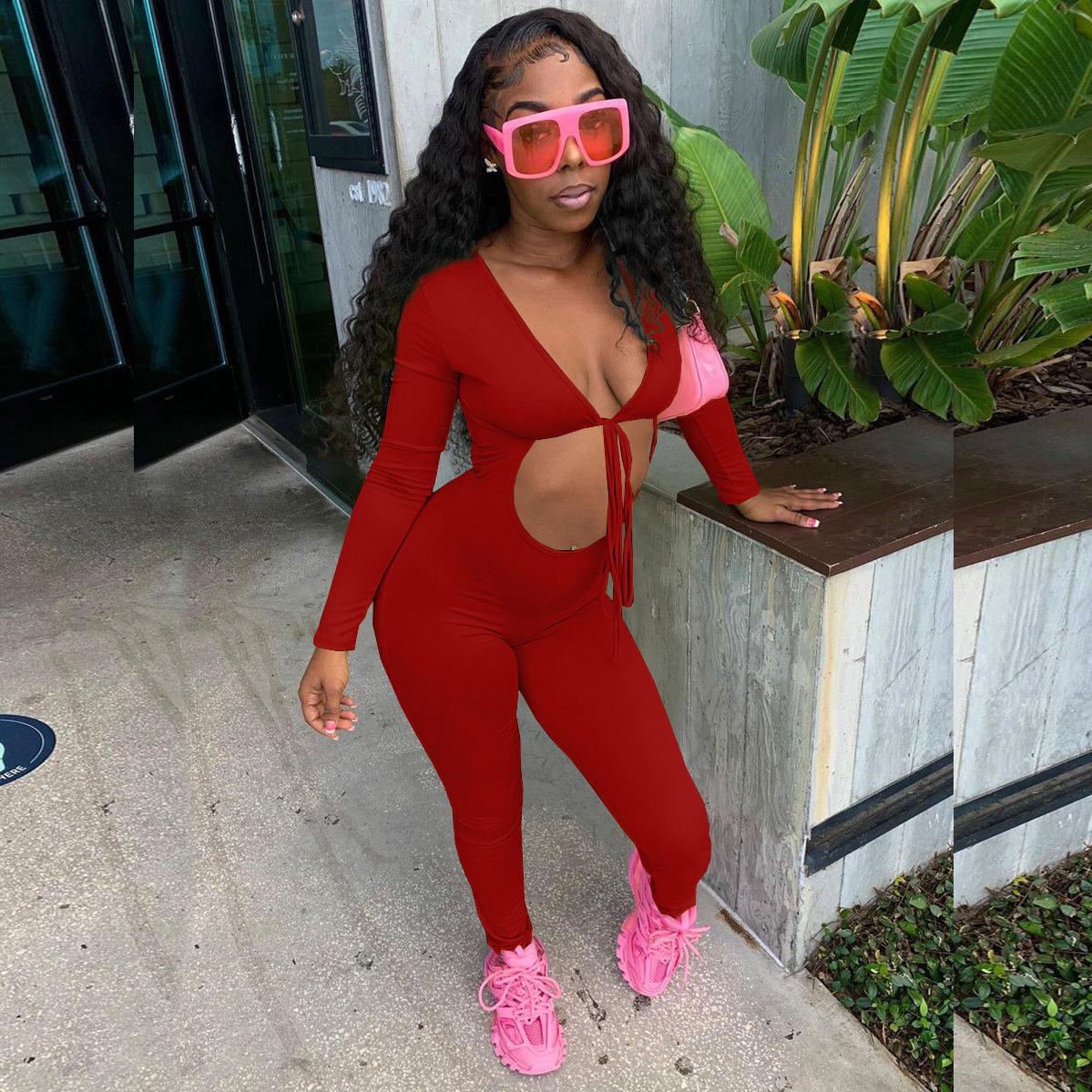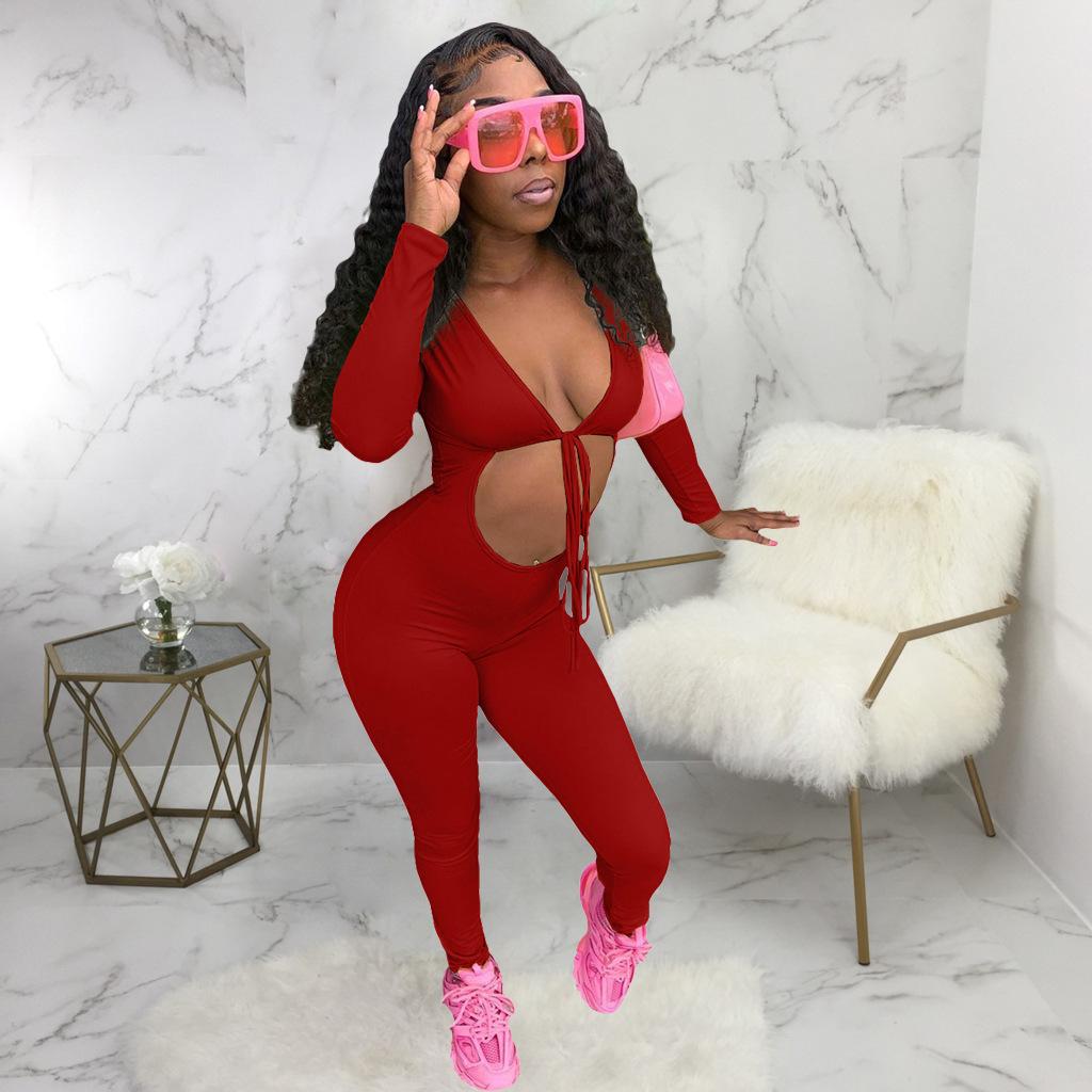 Mono de otoño para mujer, estilo europeo y americano, informal, de color sólido, con cordones, manga larga, ajustado y holgado