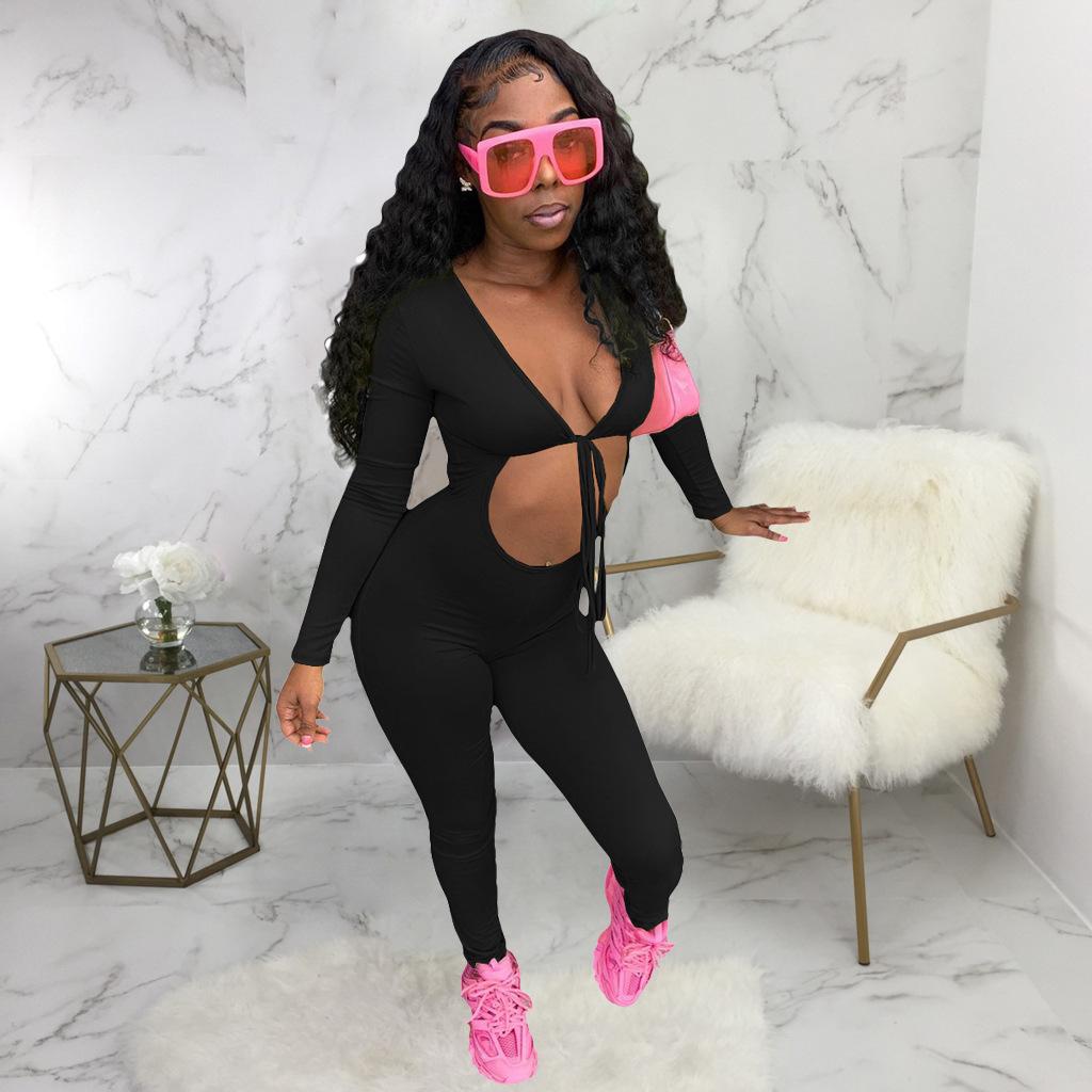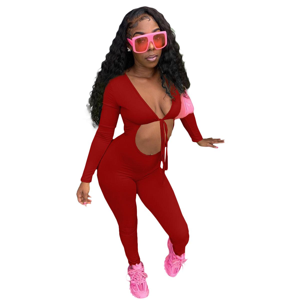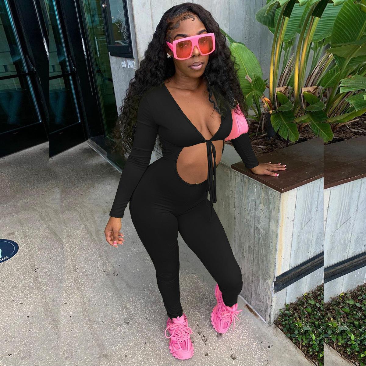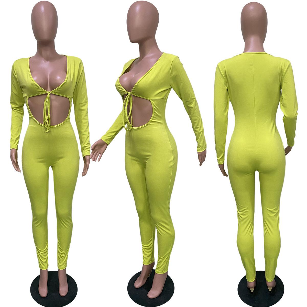 Mono de otoño para mujer, estilo europeo y americano, informal, de color sólido, con cordones, manga larga, ajustado y holgado