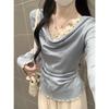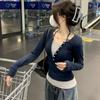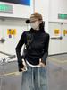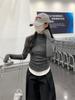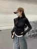2025 Nuevo Otoño Estilo Coreano Cuello con Cremallera Contrastante Diseño Plisado de Dos Piezas Falsas Camiseta de Manga Larga Top de Moda para Mujer