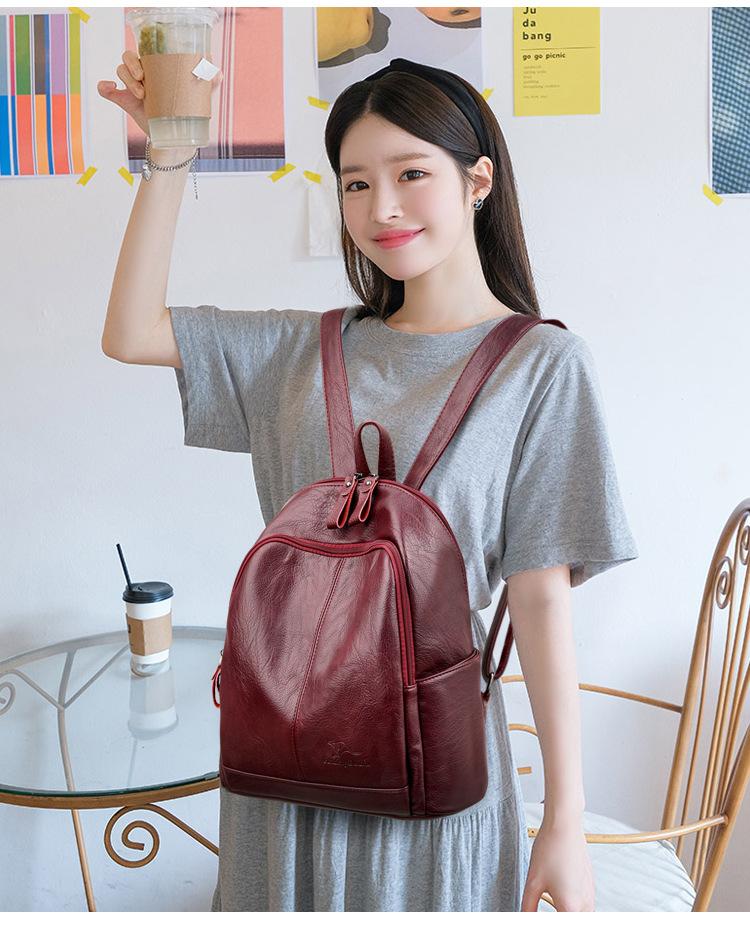 Mochila de Cuero Suave para Mujer 2025 Nueva Mochila de Moda para Mujer Estilo Coreano Gran Capacidad Bolsa de Viaje Bolsa de Mamá