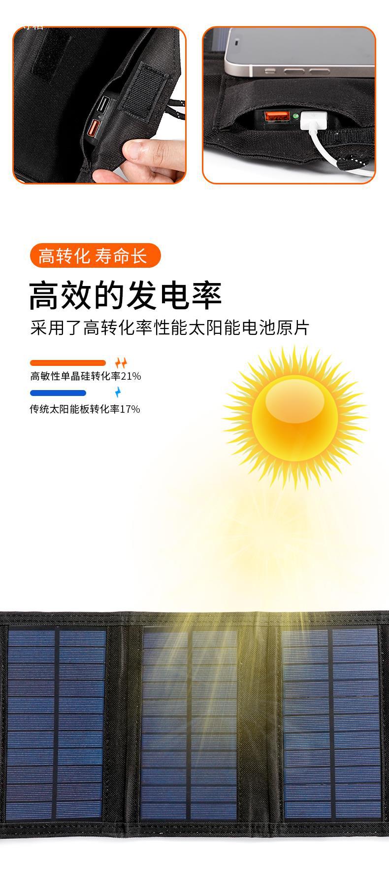 Módulo de placa de carga solar plegable para exteriores, fotovoltaica, portátil, 5 V, 12 V y 18 V, carga rápida, móvil y ligera.