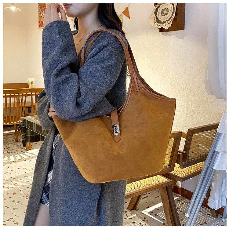 Bolso de hombro vintage de gran capacidad para mujer, bolso de mano para uso diario, de estilo moderno, para otoño e invierno, 2024