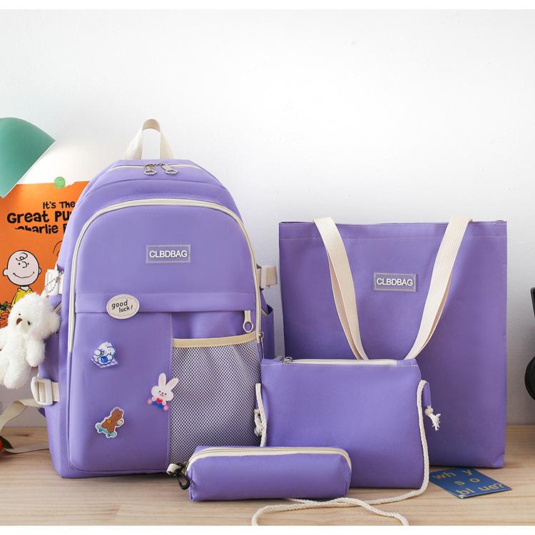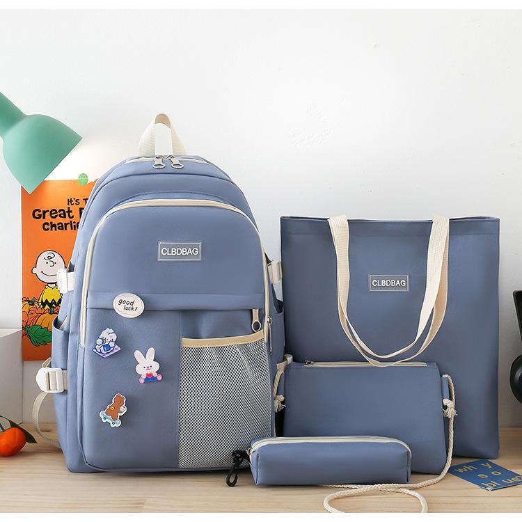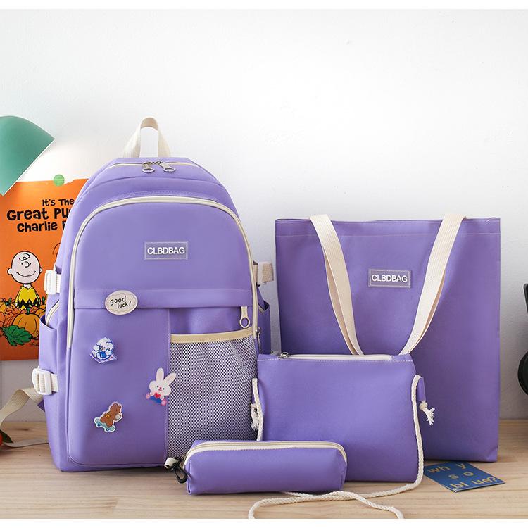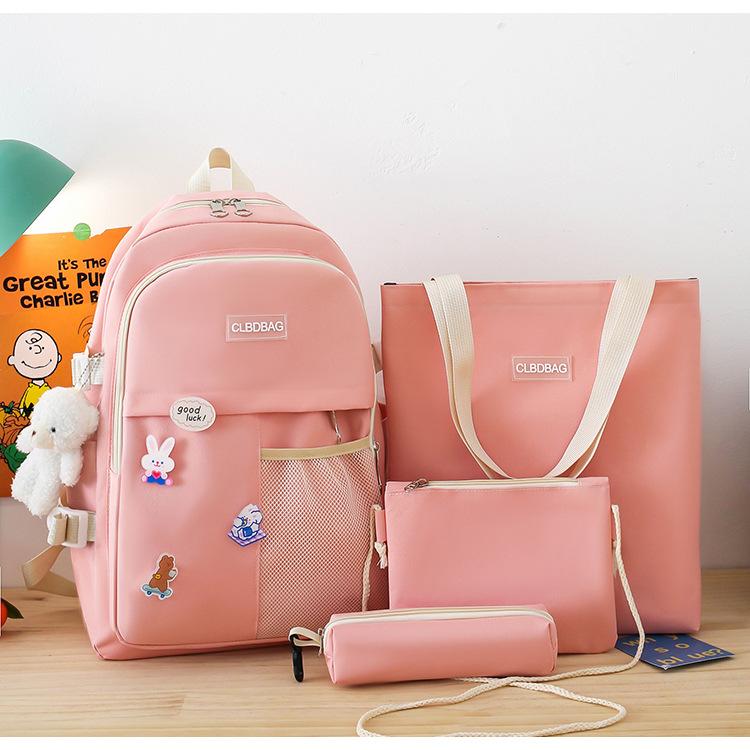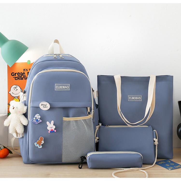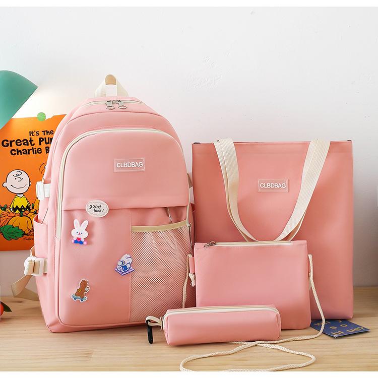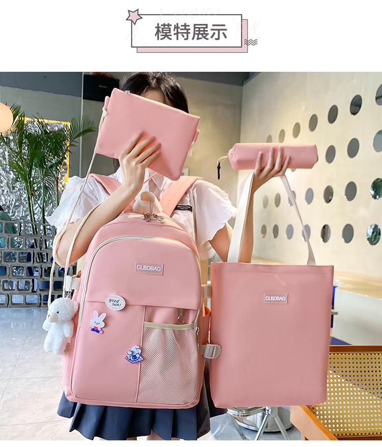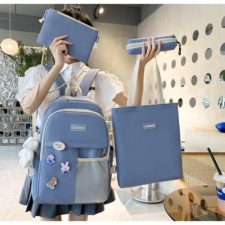 Mochila escolar para mujer, estilo coreano, ligera, combinable, para estudiantes de secundaria, de gran capacidad, de cuatro piezas, para estudiantes de primaria.