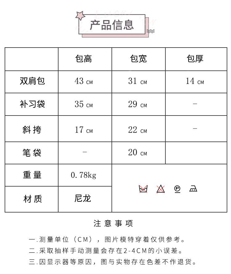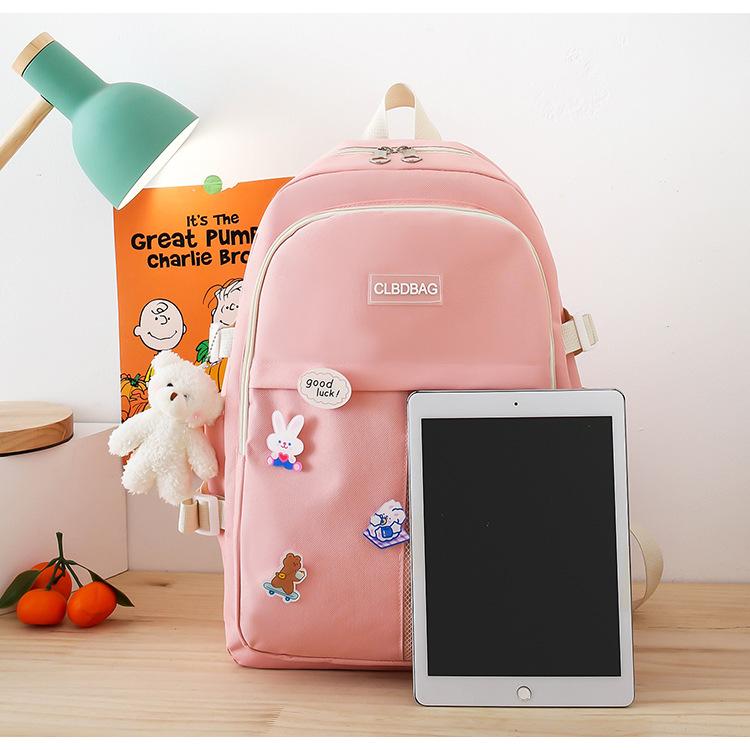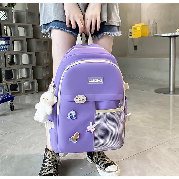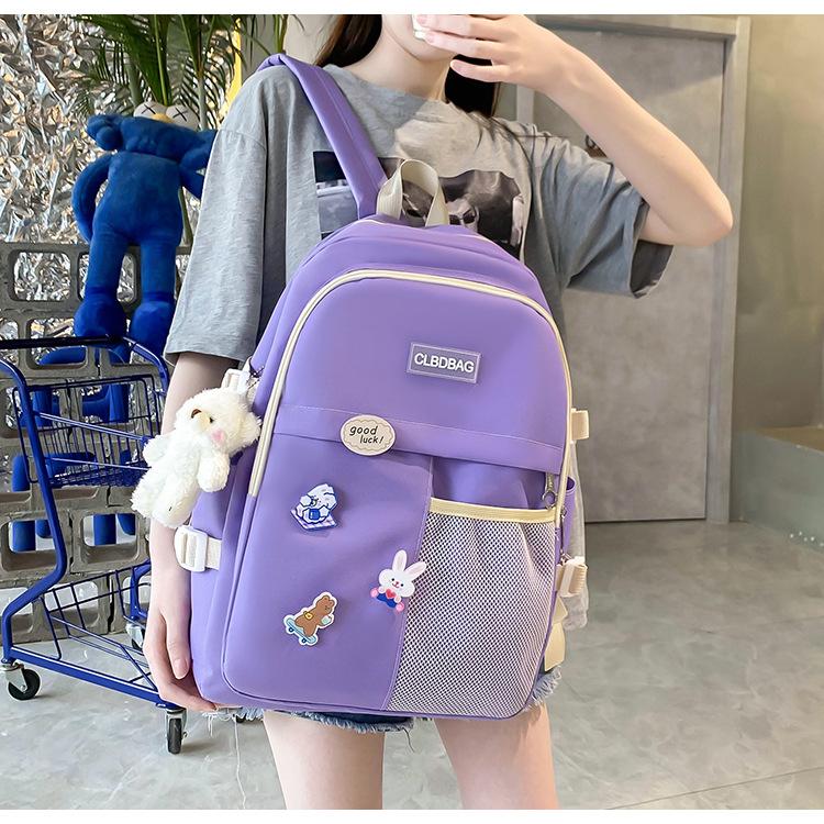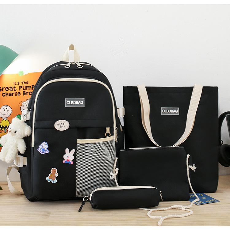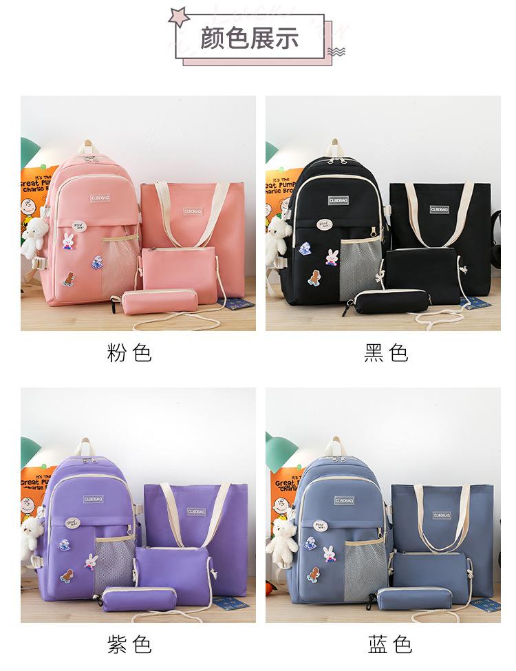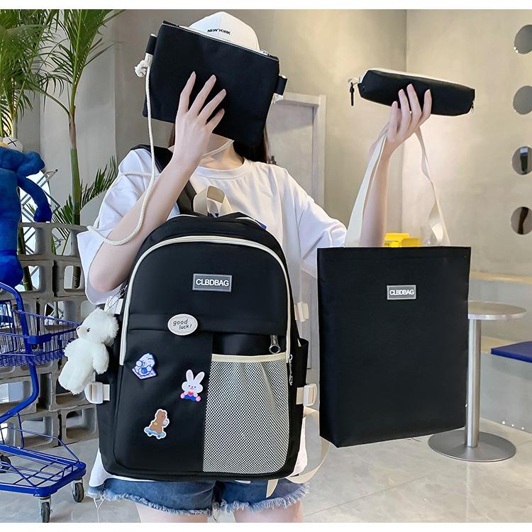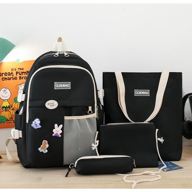 Mochila escolar para mujer, estilo coreano, ligera, combinable, para estudiantes de secundaria, de gran capacidad, de cuatro piezas, para estudiantes de primaria.