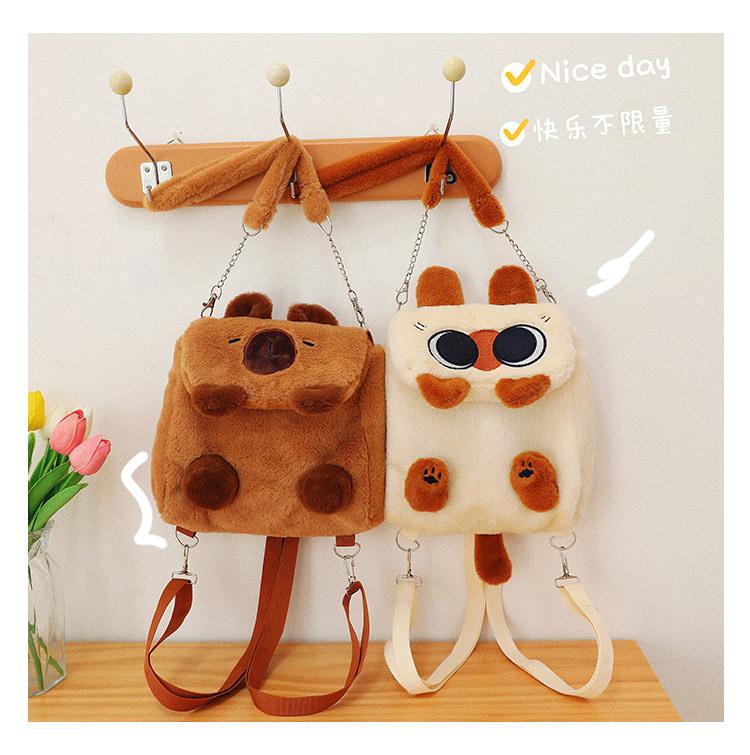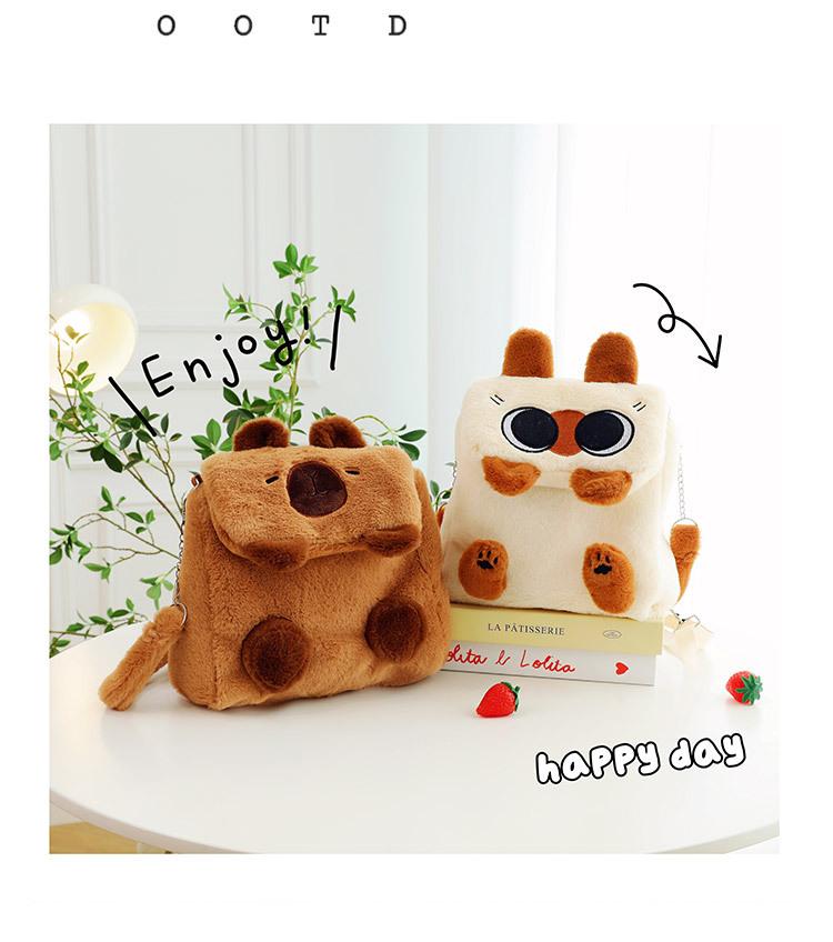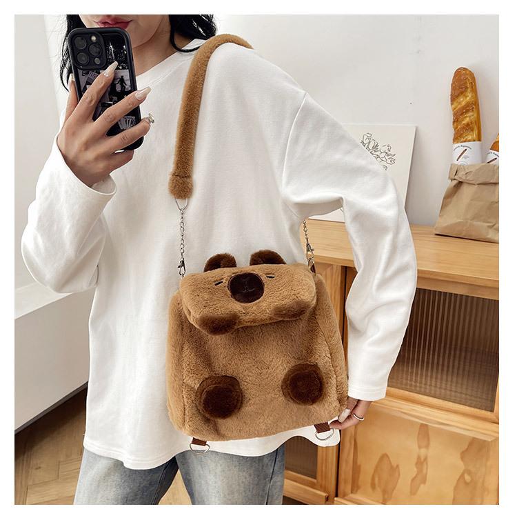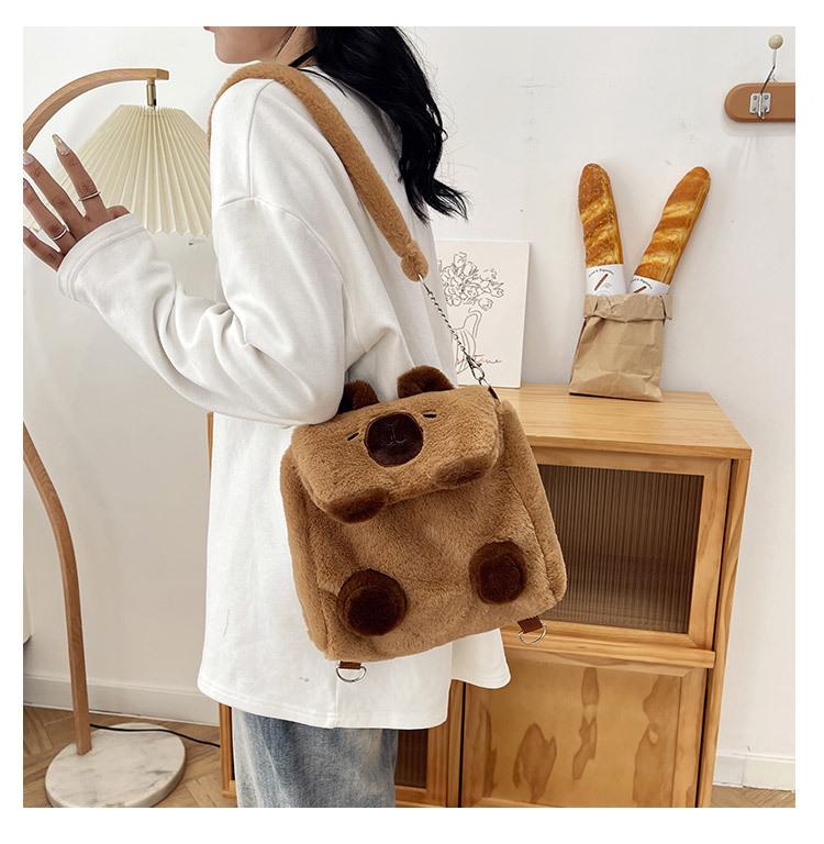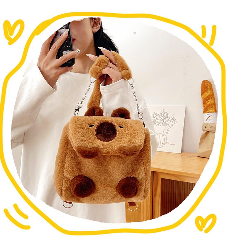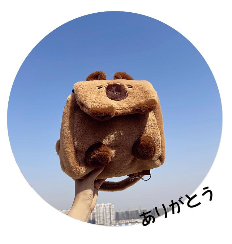 Bolso Kapibala para mujer, de peluche, bonito, con dibujos animados de carpincho, para estudiantes universitarios, bandolera, mochila, bolso de hombro