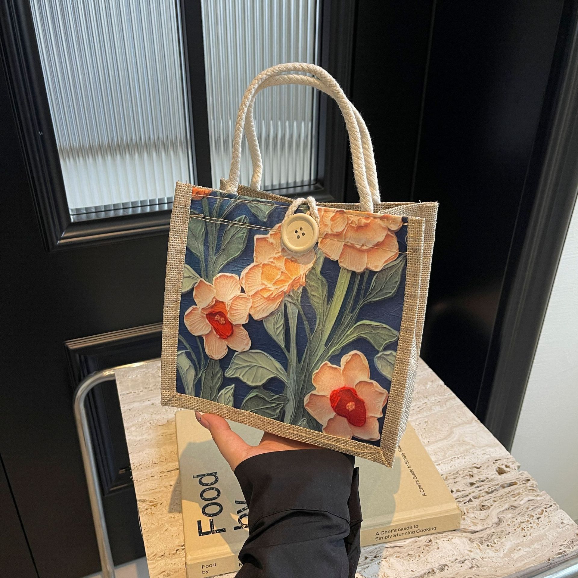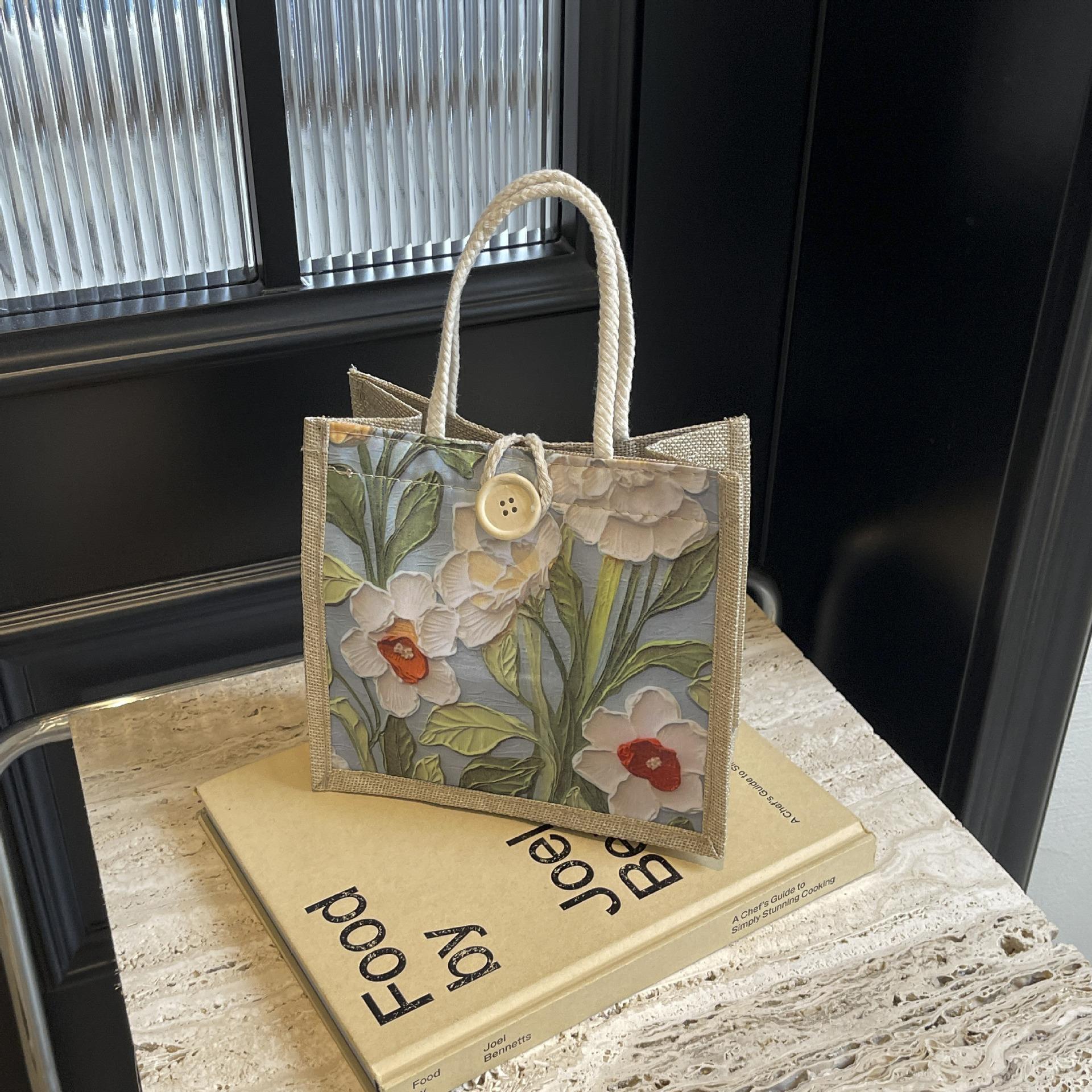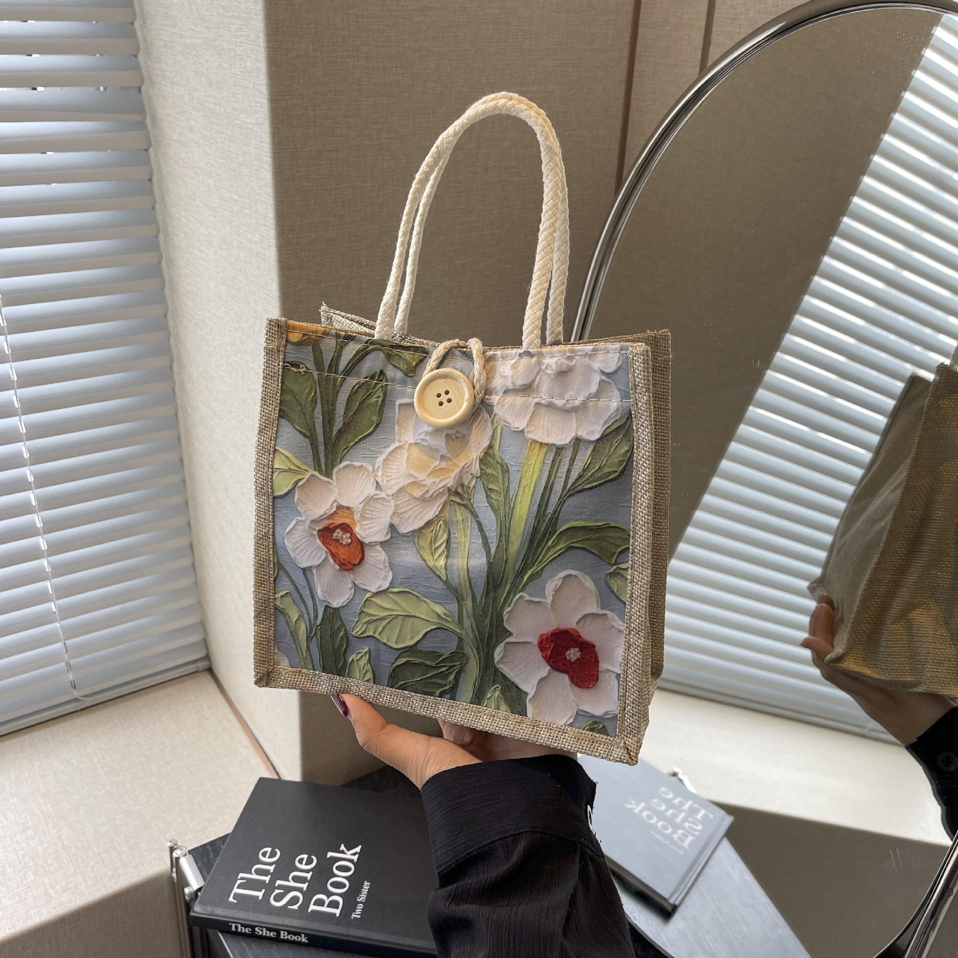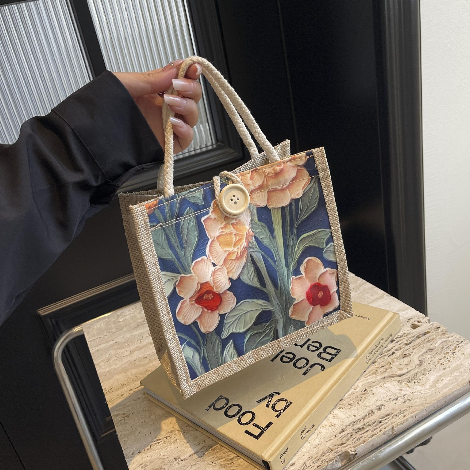 Bolso de mano estilo coreano para estudiantes, bolso de almuerzo de lino a la moda para mujer, nuevo bolso de lona estilo japonés Ol