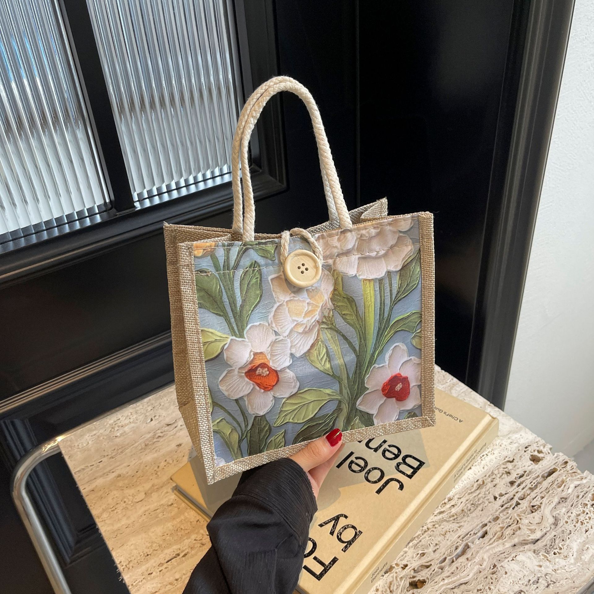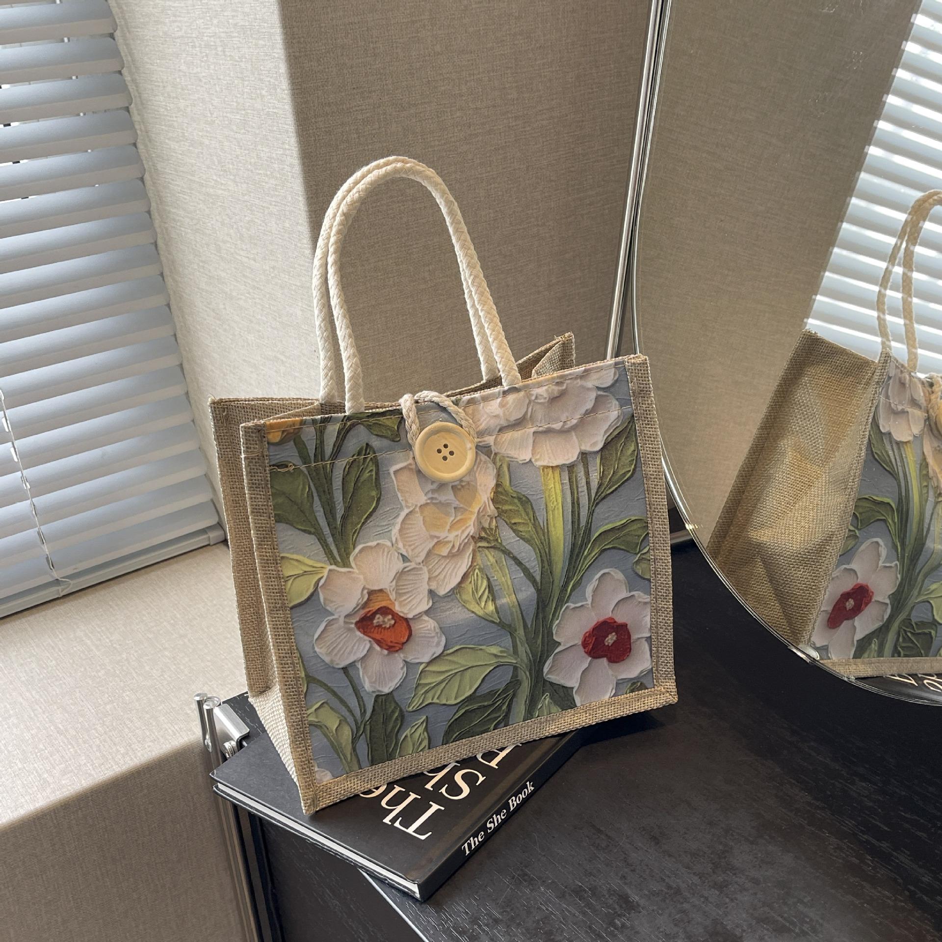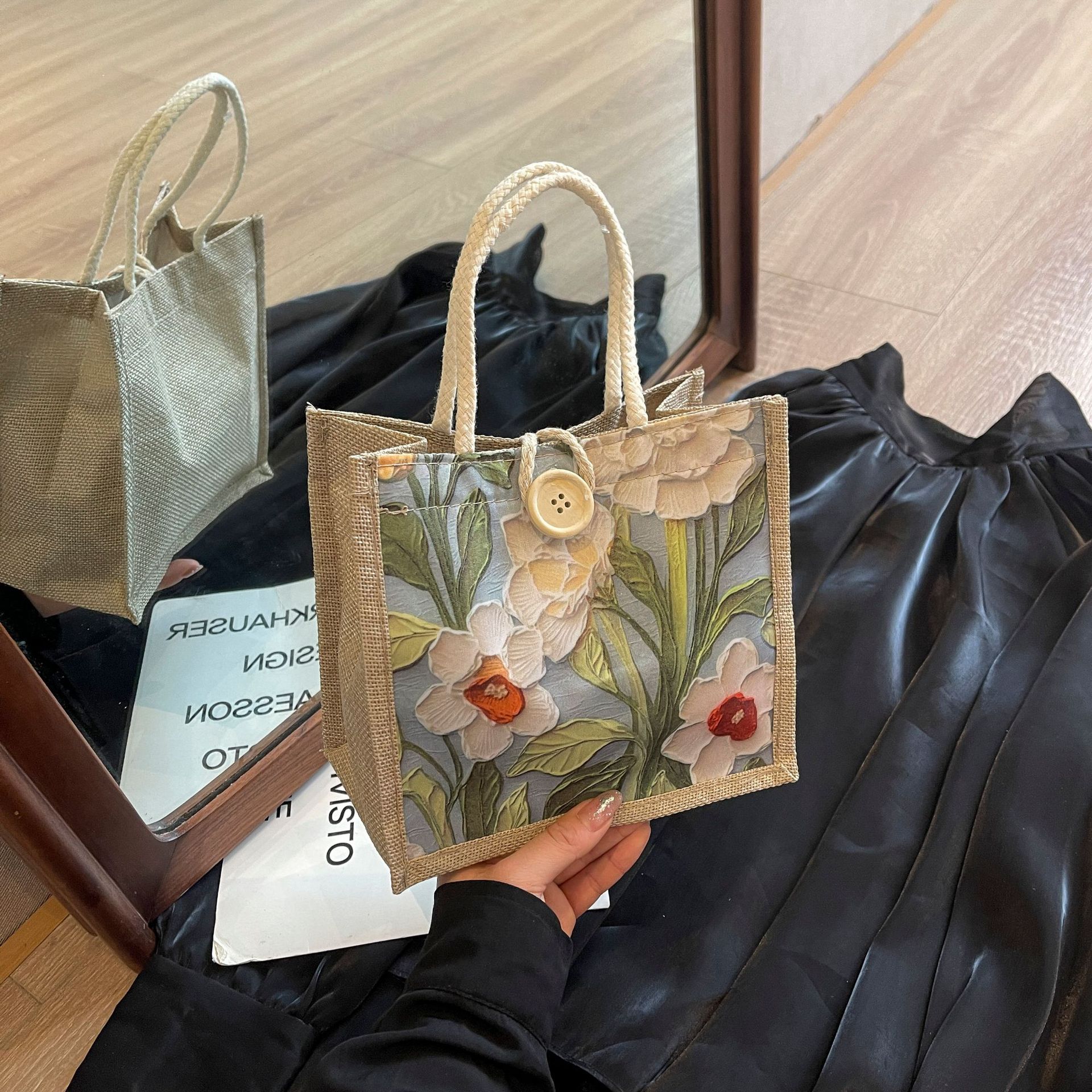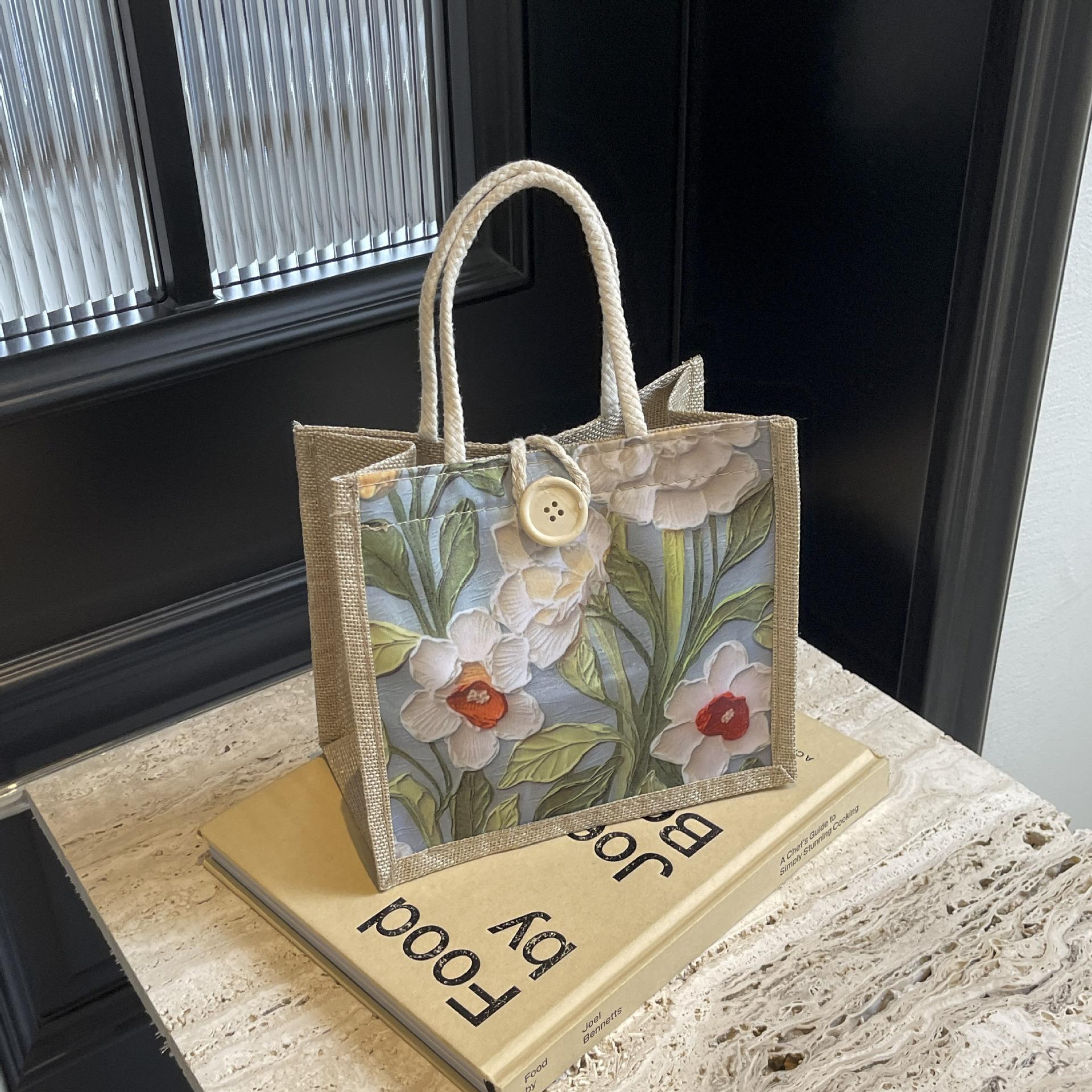 Bolso de mano estilo coreano para estudiantes, bolso de almuerzo de lino a la moda para mujer, nuevo bolso de lona estilo japonés Ol