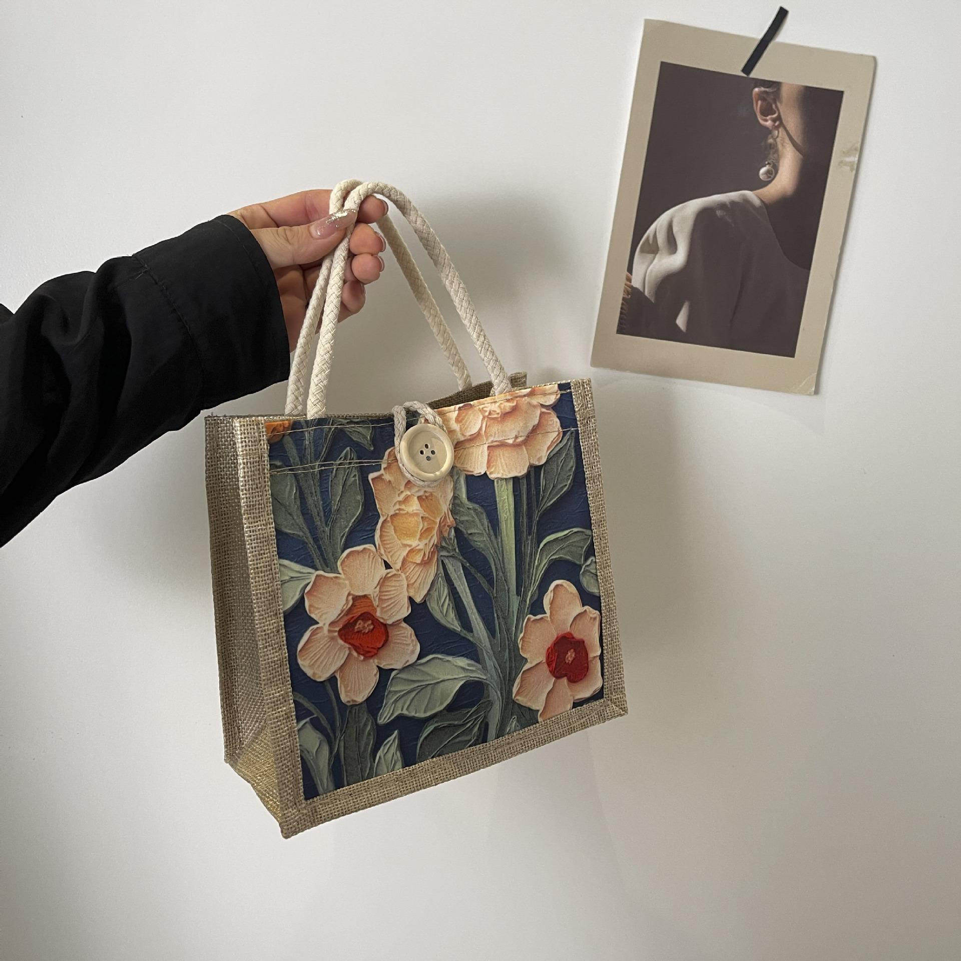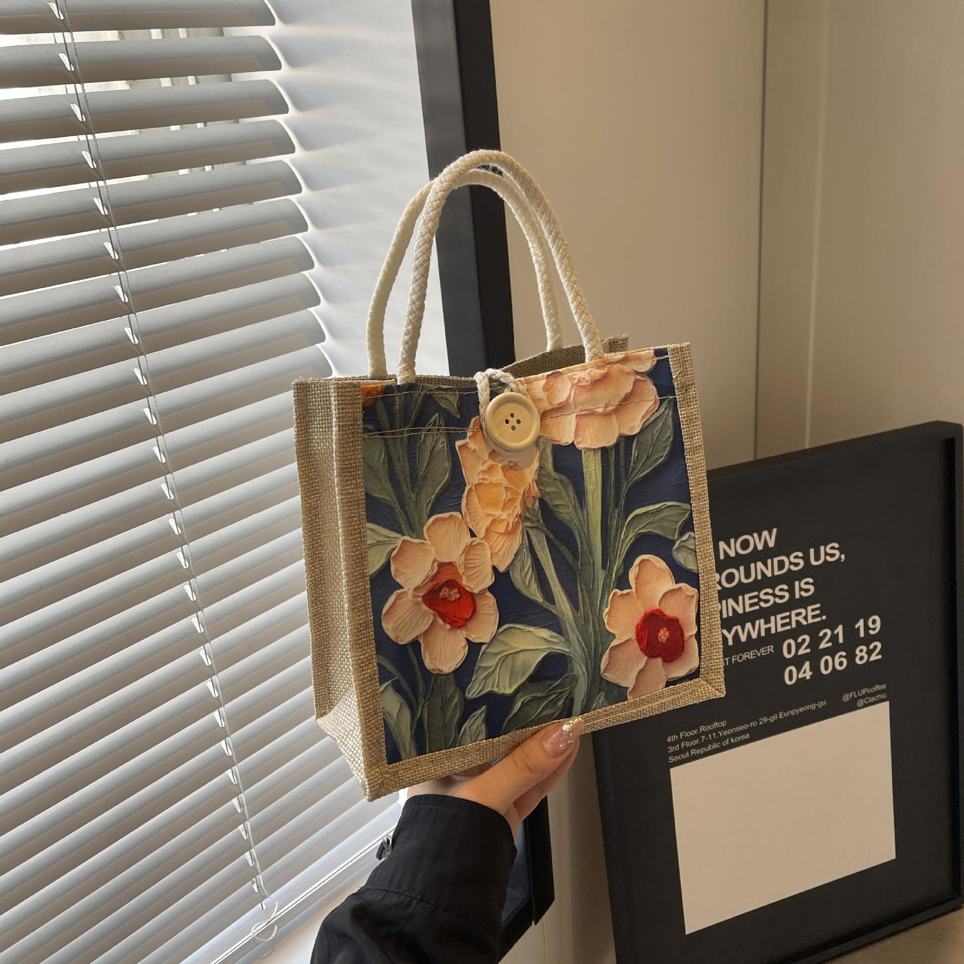 Compra Bolso de mano estilo coreano para estudiantes, bolso de almuerzo de lino a la moda para mujer, nuevo bolso de lona estilo japonés Ol al por mayor en Joom.pro