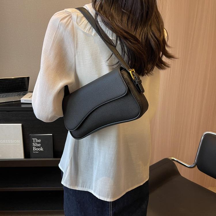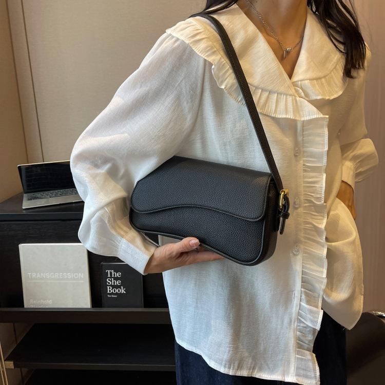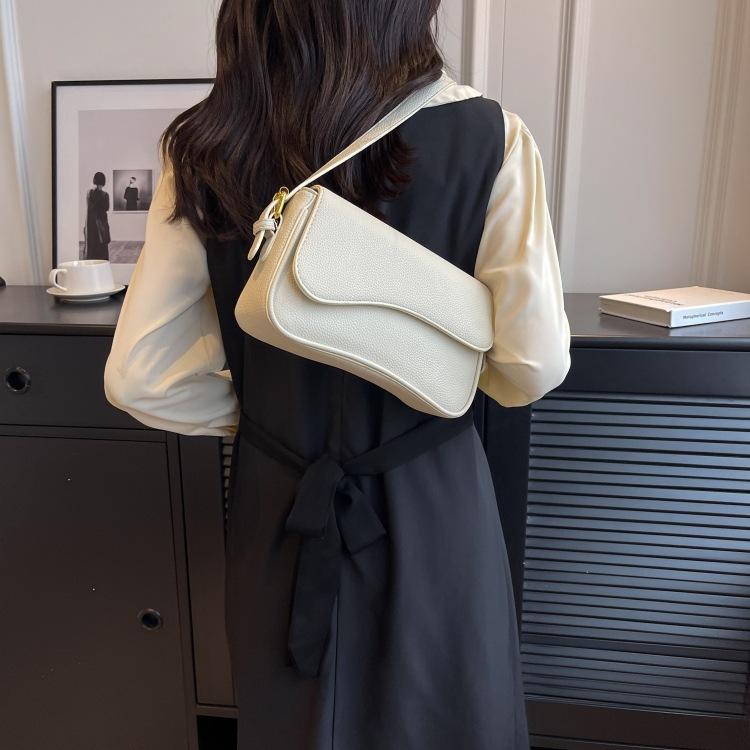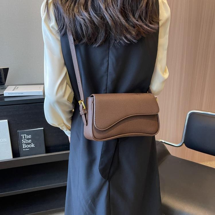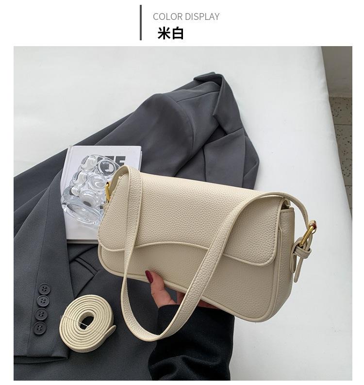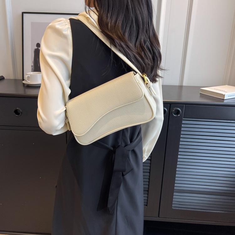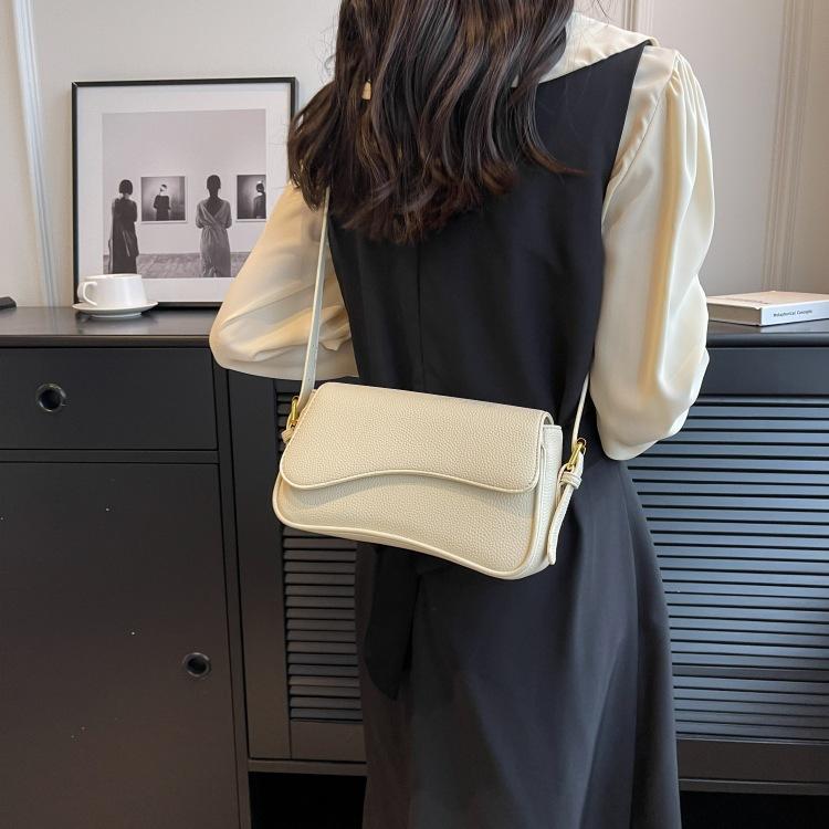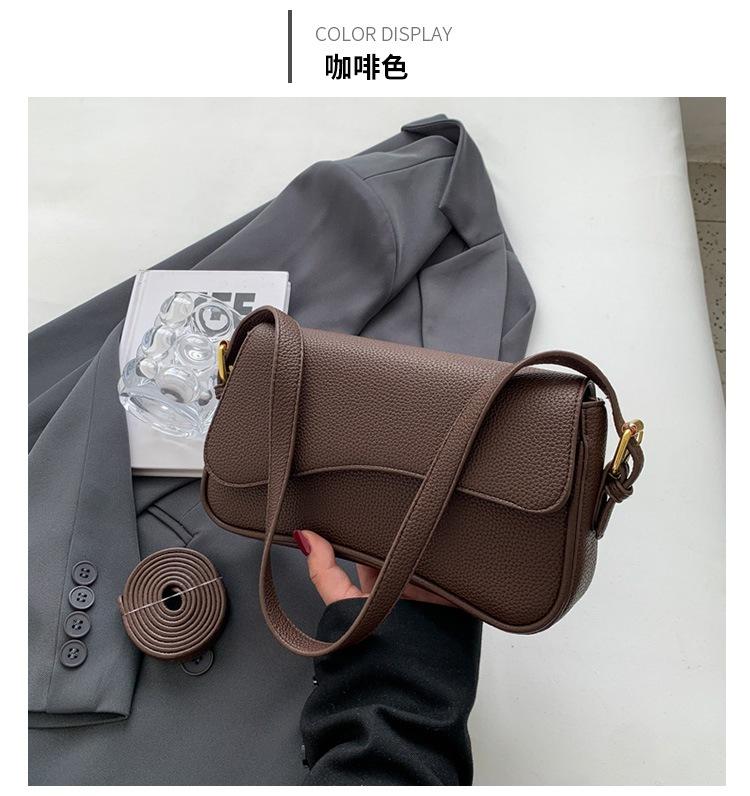 Nuevo bolso de hombro versátil de moda para mujeres ejecutivas, bolso de axila simple con patrón de lichi, estilo retro Hong Kong, bolso bandolera