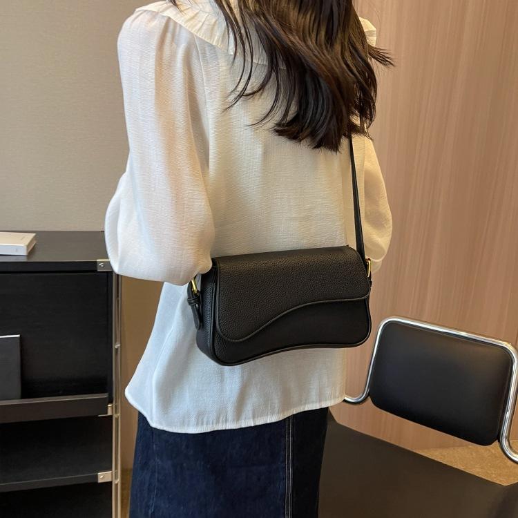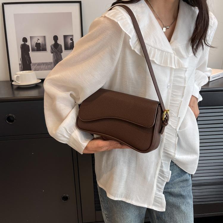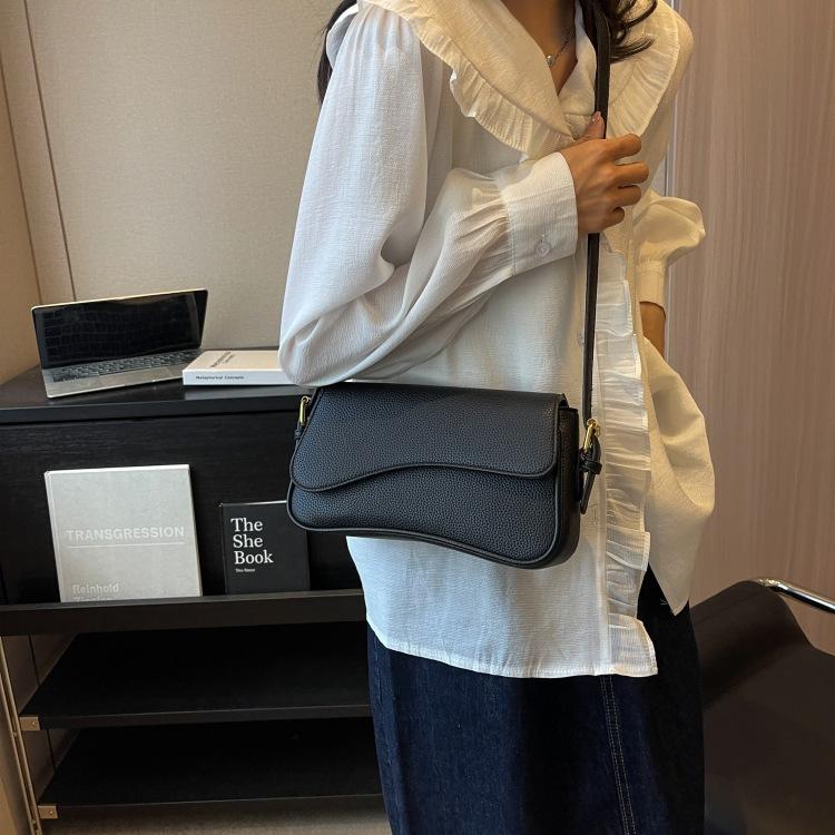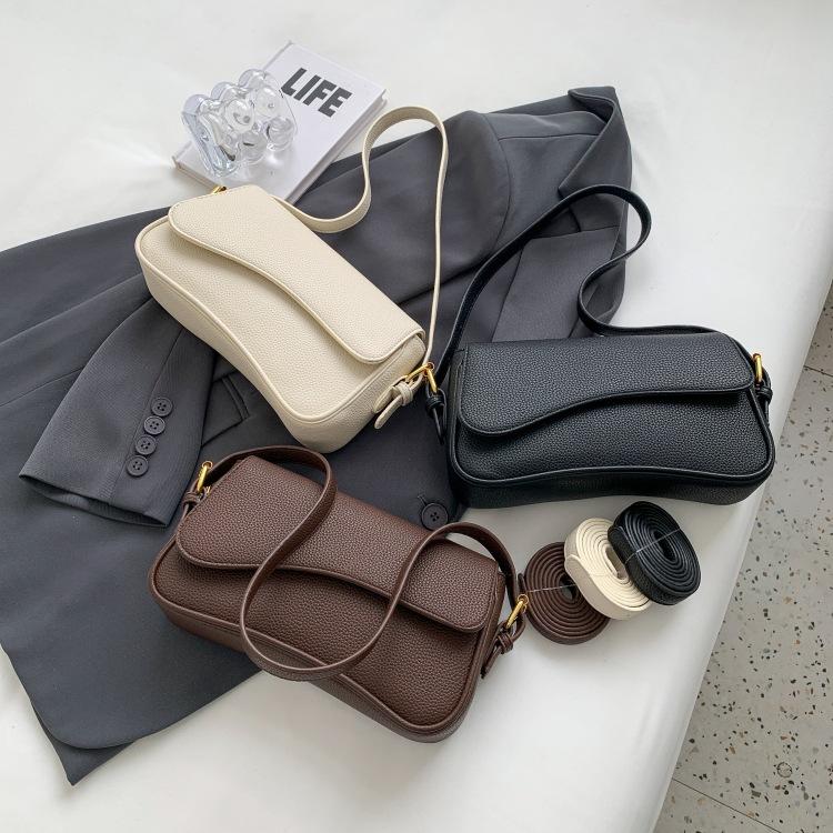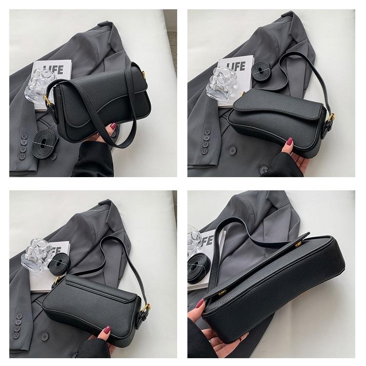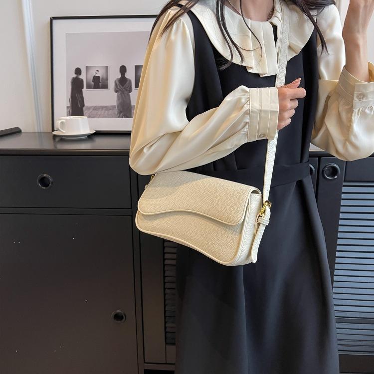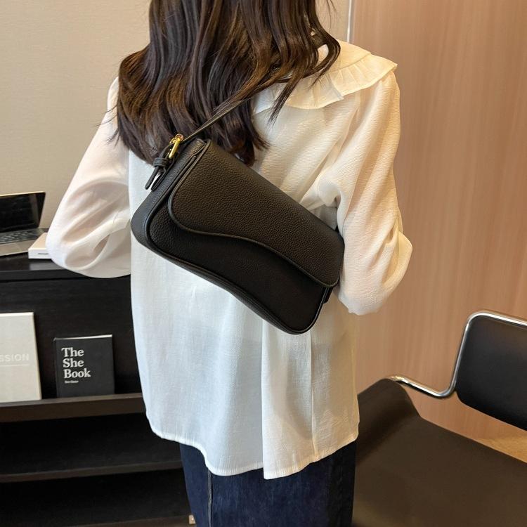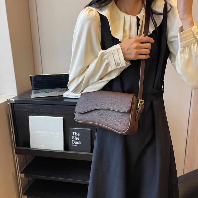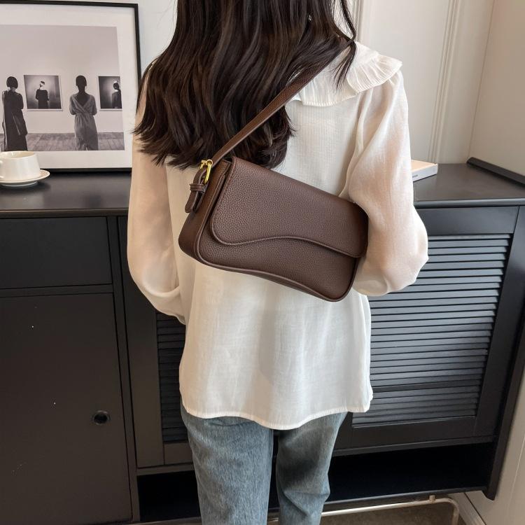 Nuevo bolso de hombro versátil de moda para mujeres ejecutivas, bolso de axila simple con patrón de lichi, estilo retro Hong Kong, bolso bandolera