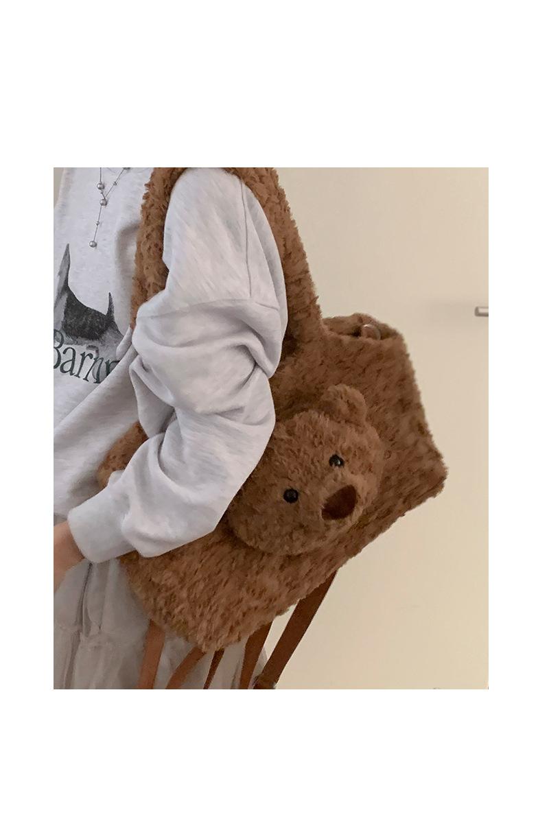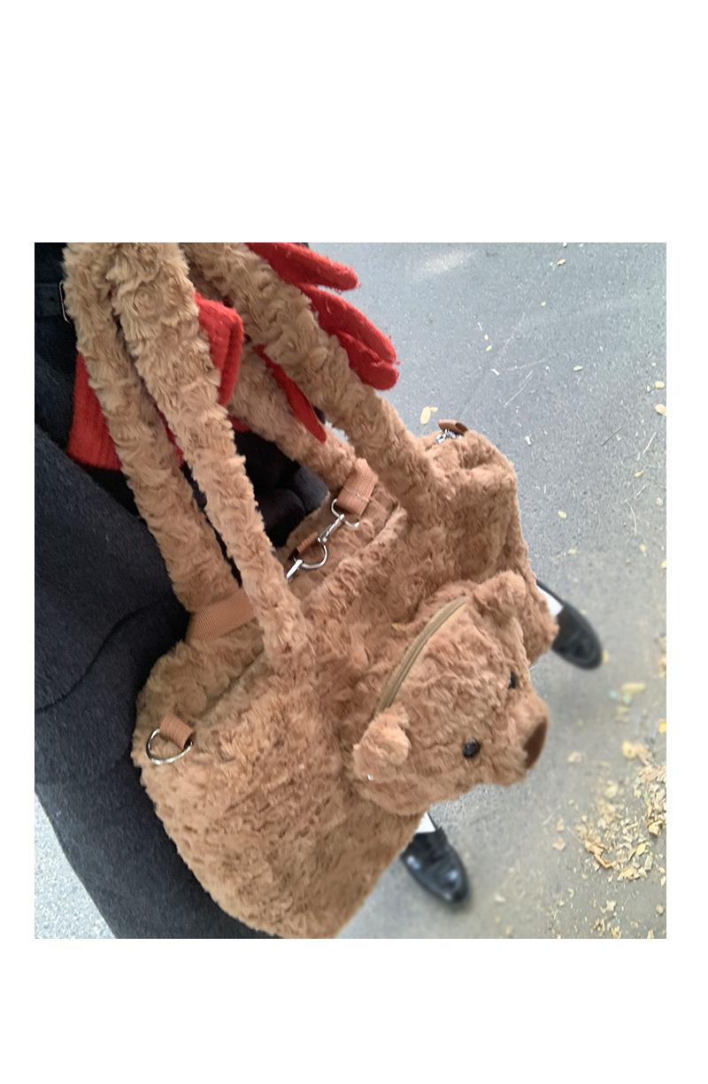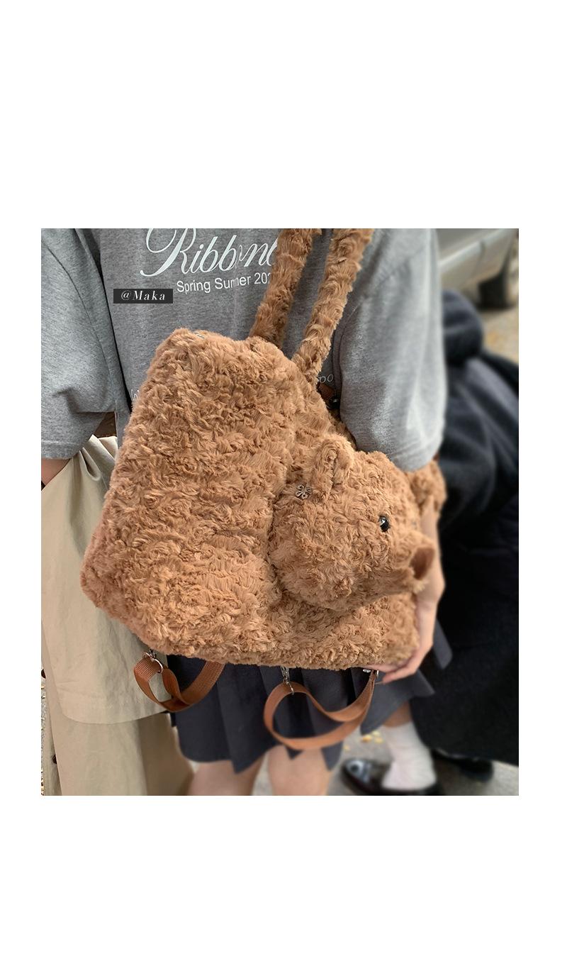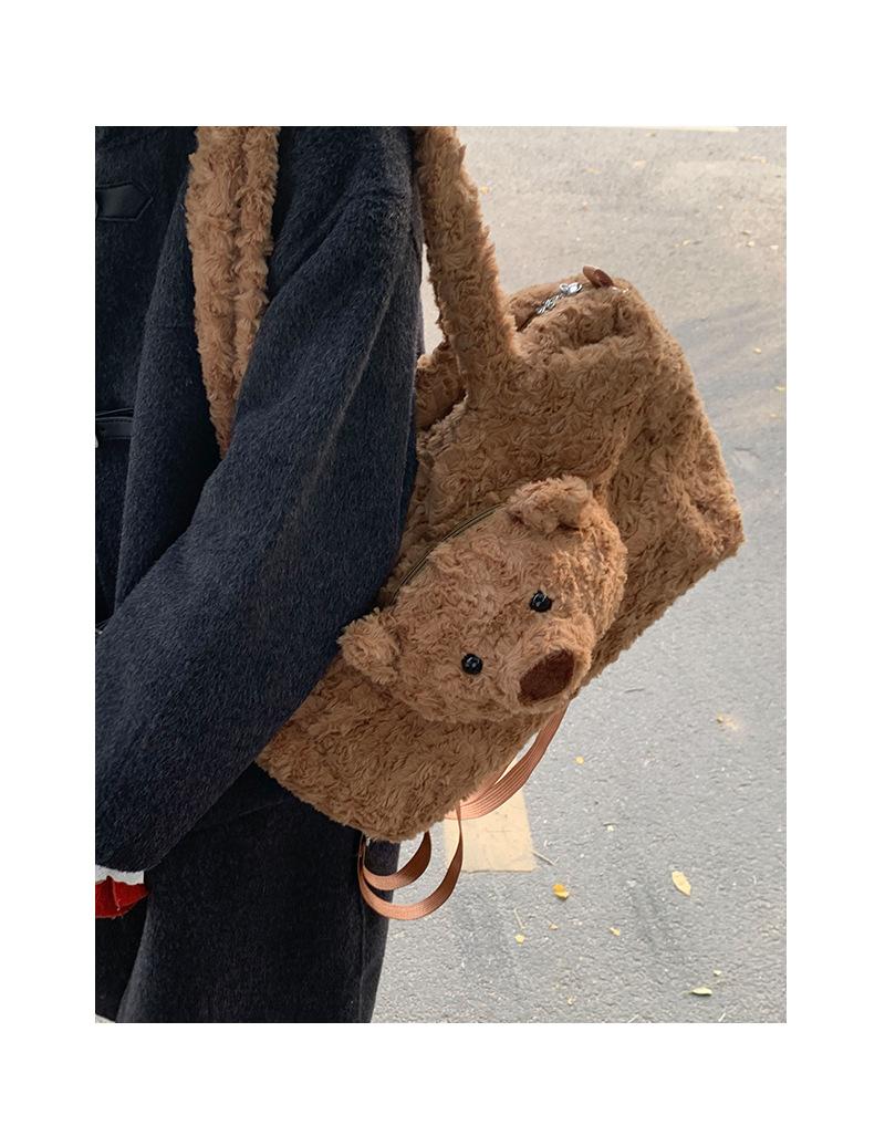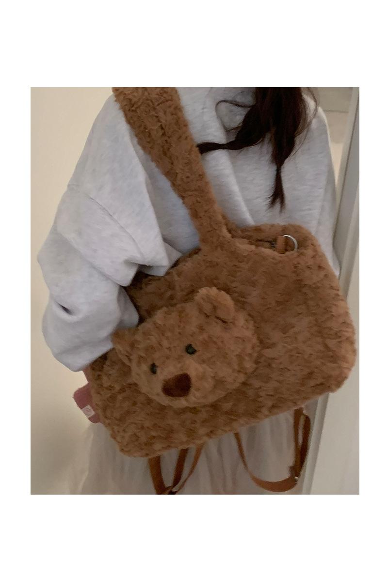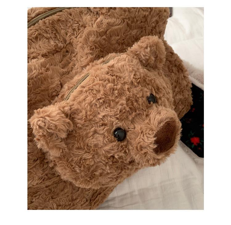 Bolsos de Peluche de Dibujos Animados Lindos al por Mayor para Mujeres, Bolsos de Muñeco de Oso de Estilo Nuevo de Otoño e Invierno, Mochilas de Gran Capacidad, Bolsos Peludos