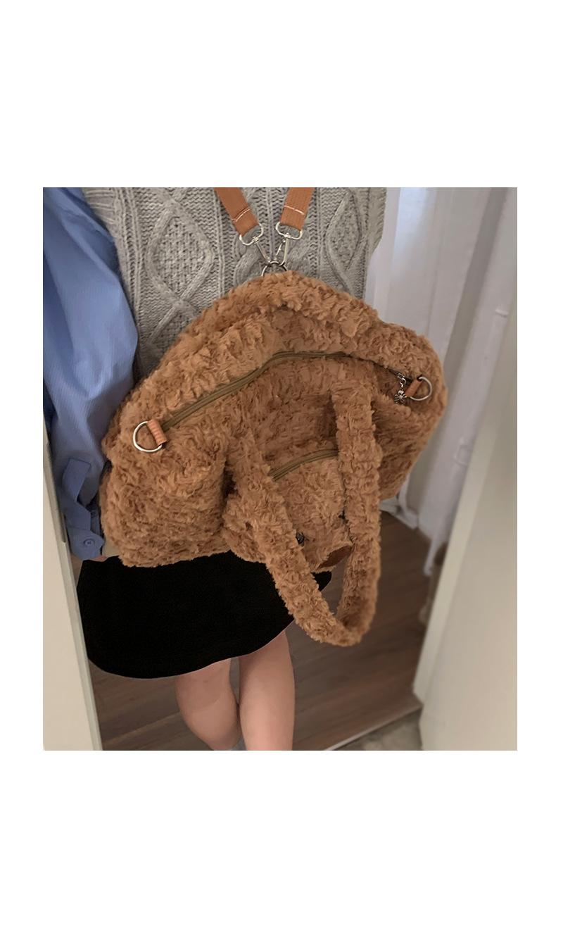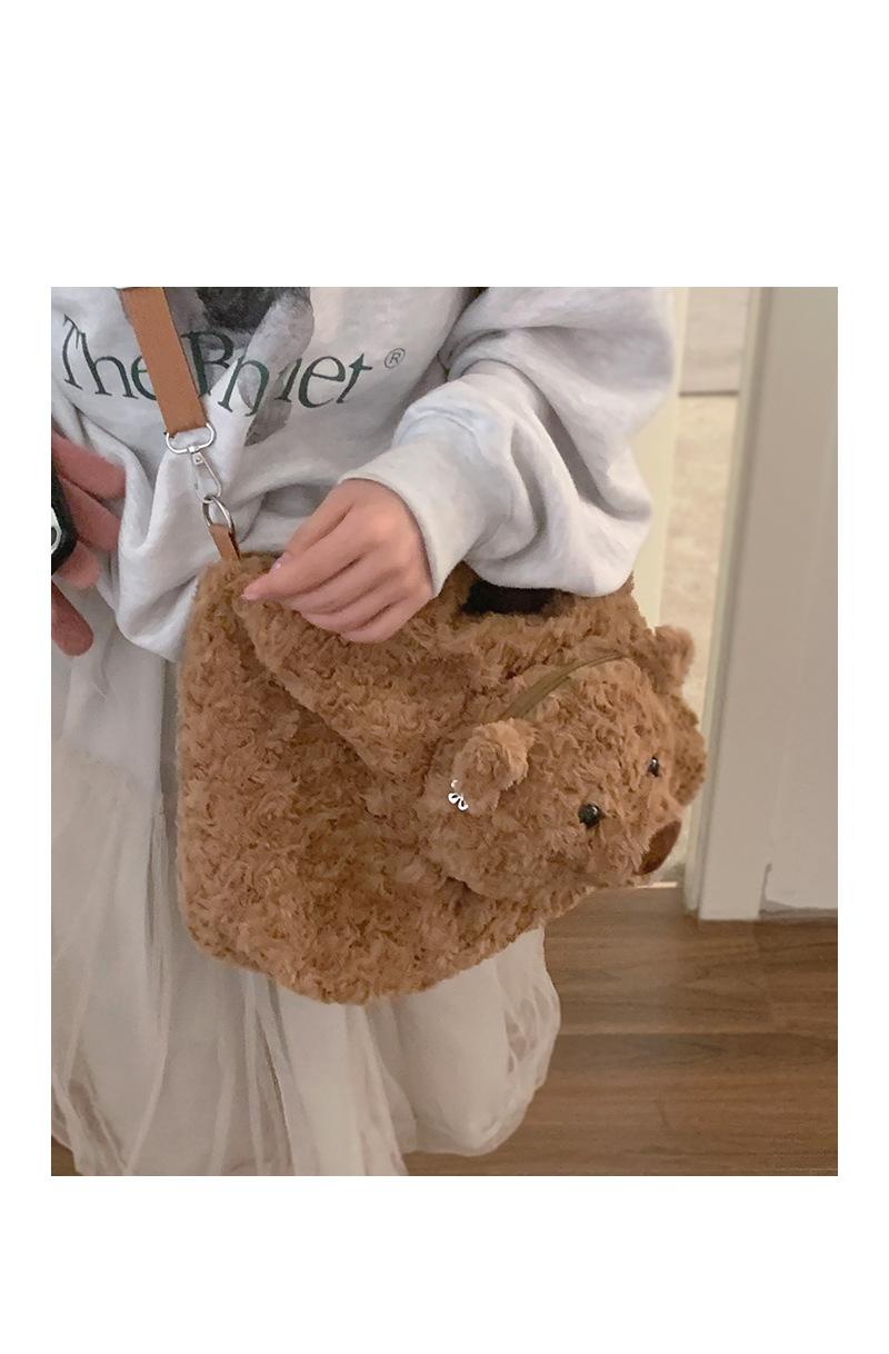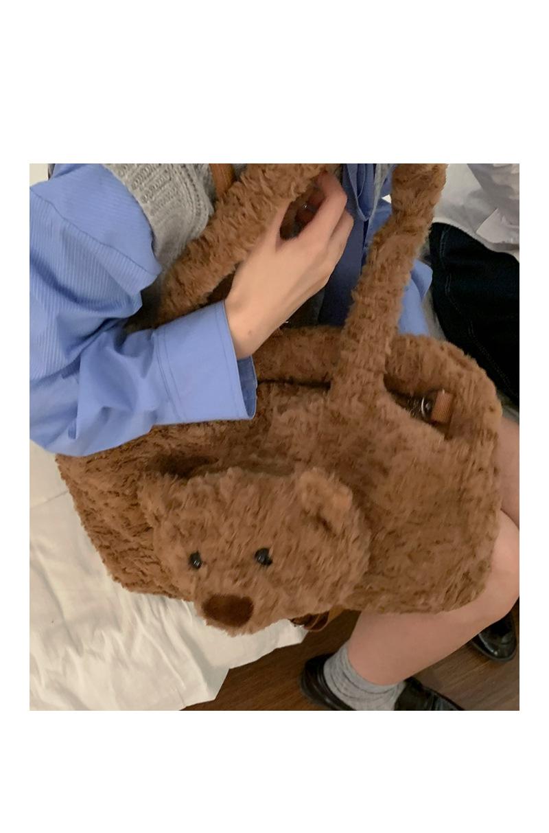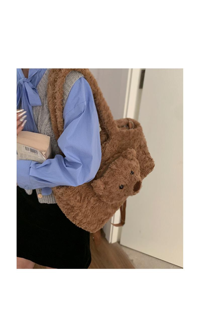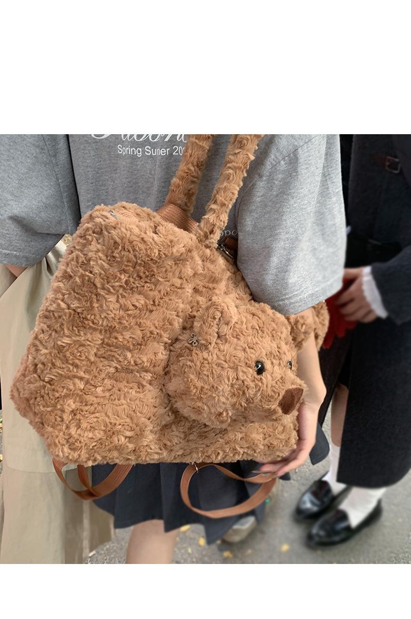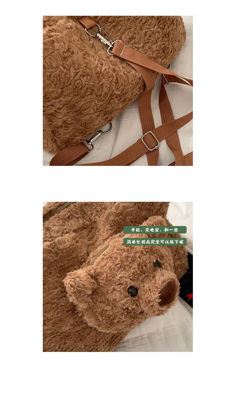 Bolsos de Peluche de Dibujos Animados Lindos al por Mayor para Mujeres, Bolsos de Muñeco de Oso de Estilo Nuevo de Otoño e Invierno, Mochilas de Gran Capacidad, Bolsos Peludos
