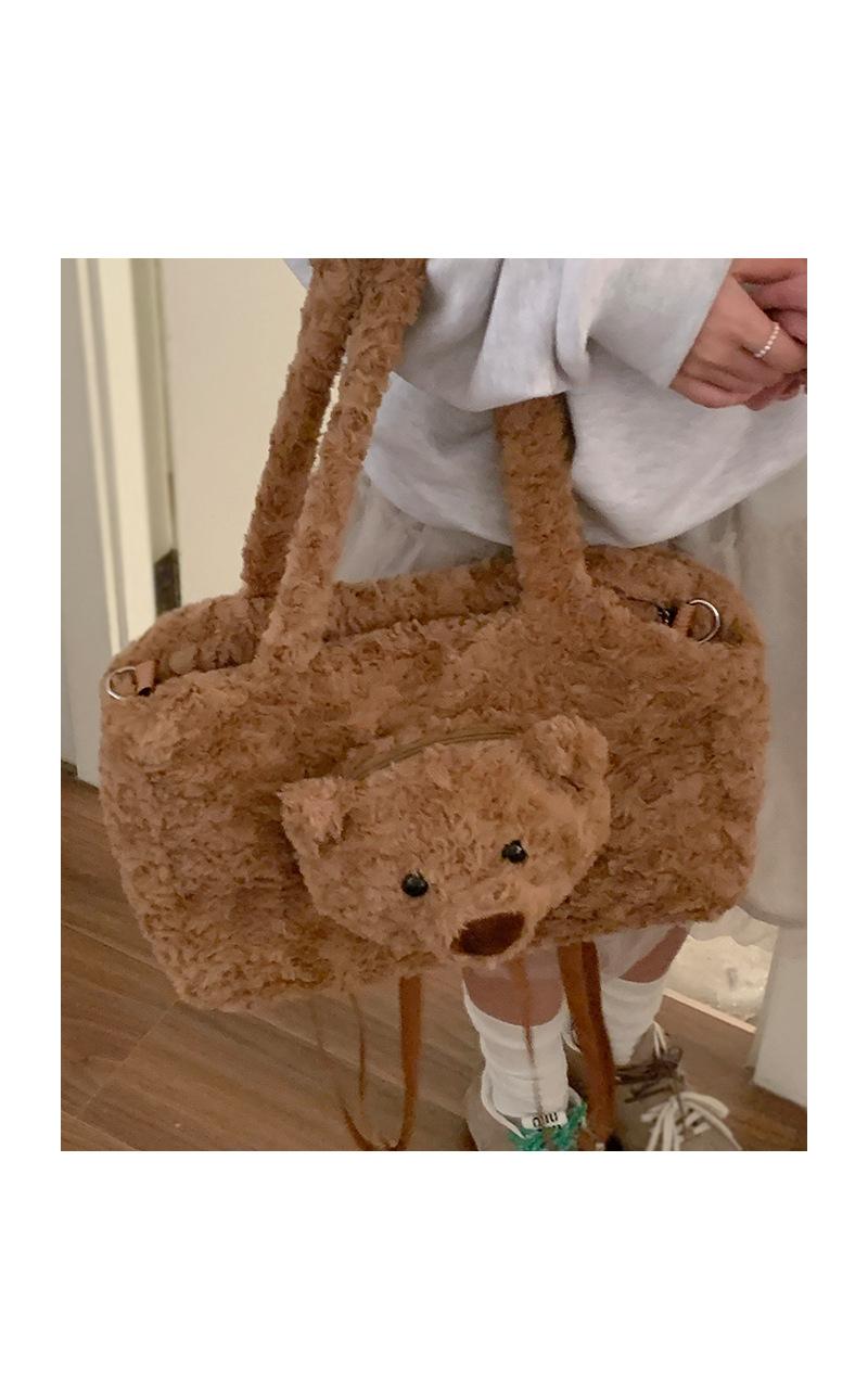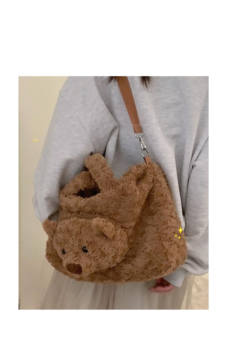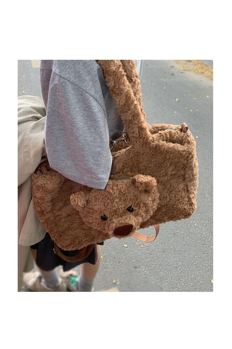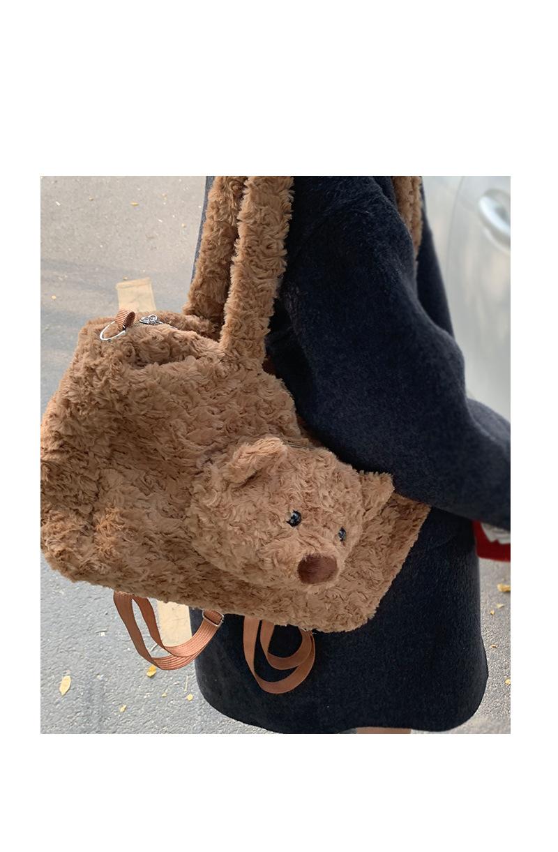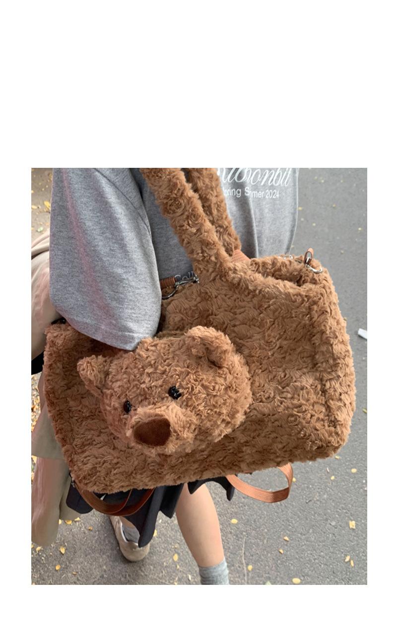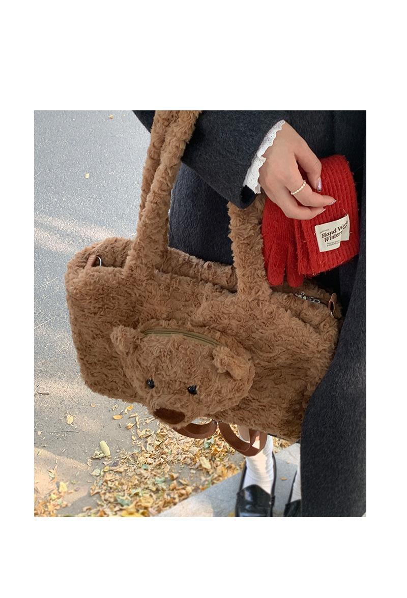 Bolsos de Peluche de Dibujos Animados Lindos al por Mayor para Mujeres, Bolsos de Muñeco de Oso de Estilo Nuevo de Otoño e Invierno, Mochilas de Gran Capacidad, Bolsos Peludos