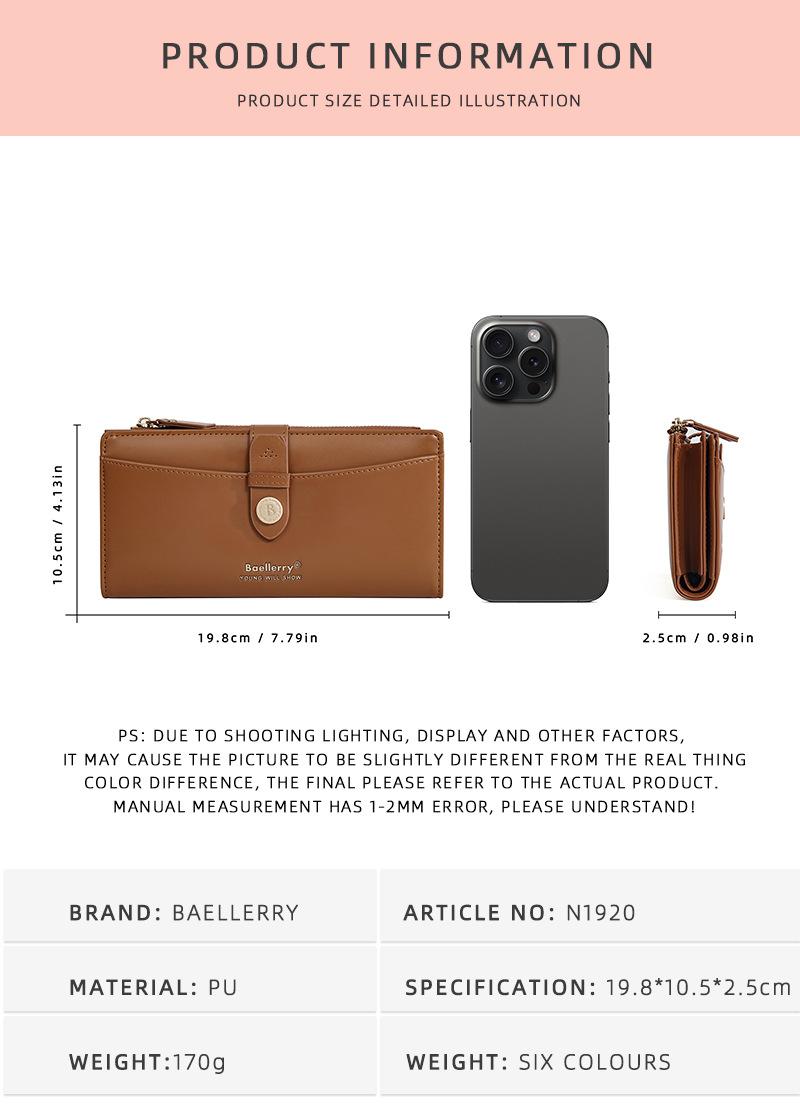Billetera Larga Nueva para Mujer baellerry Transfronteriza Multitarjeta Cremallera Monedero Moda Ins Bolsa para Teléfono Móvil