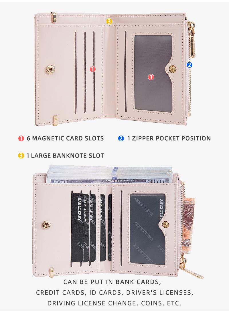 Nueva Billetera Corta para Mujer baellerry Transfronteriza Esmerilada Multitarjeta Monedero Moda Cremallera Tarjetero para Mujer