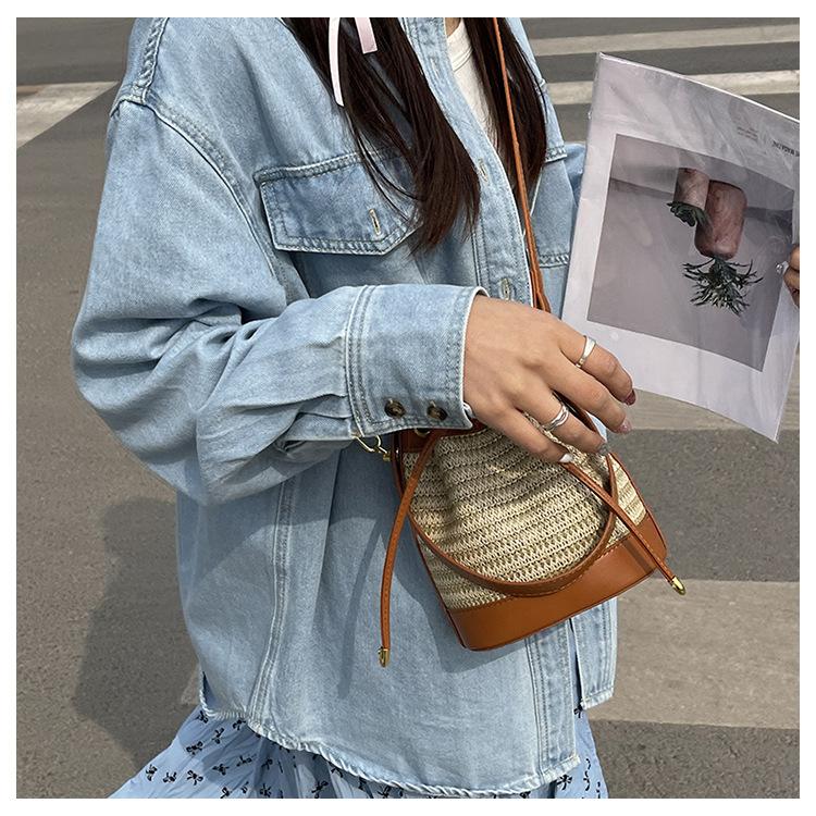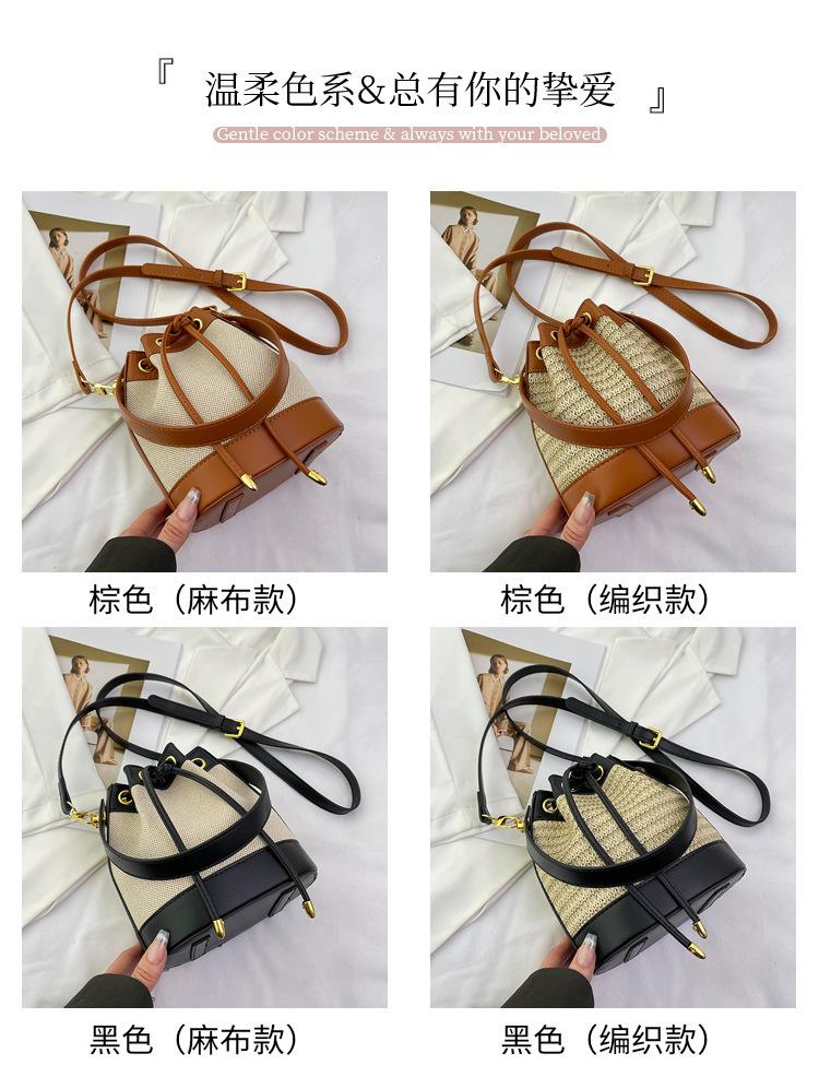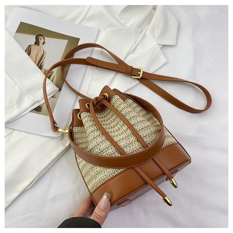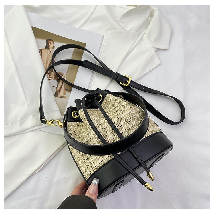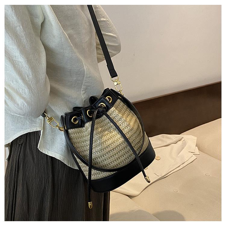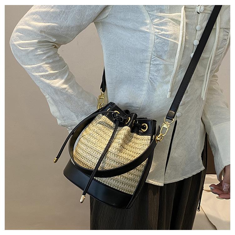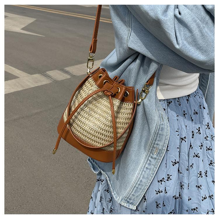 Bolso de paja para mujer, verano 2024, nuevo diseño de nicho, moderno bolso de ratán retro con cordón, bolso bandolera versátil.
