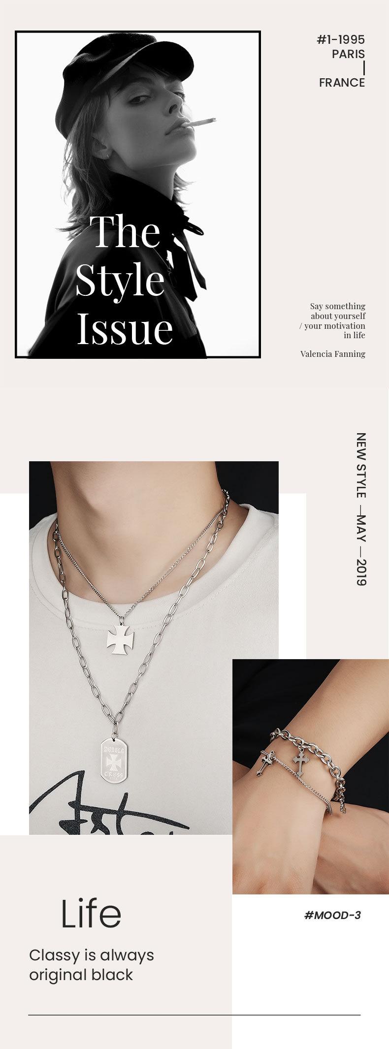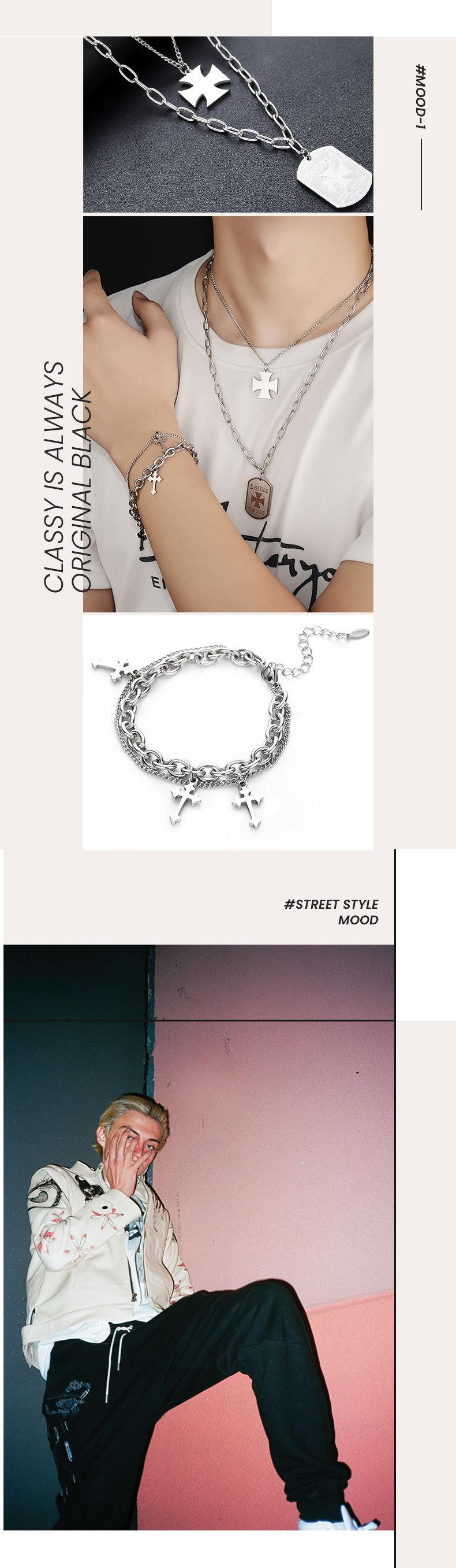 Collar de cruz apilada de doble capa, pulsera de diseño de moda con personalidad para hombre, cadena de lana de alta calidad que combina con todo, joyería de moda para mujer.
