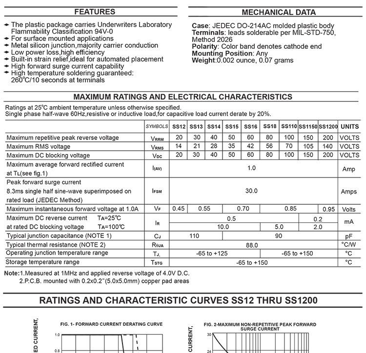 Diodo Schottky SMD SR180 SS18 SMA DO-214AC 1A 8