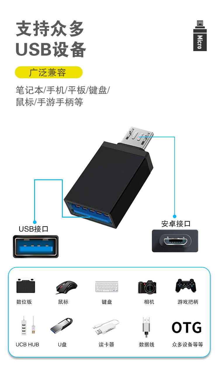 Adaptador OTG Micro a USB 3.0 para teléfono móvil, compatible con Huawei y Xiaomi.