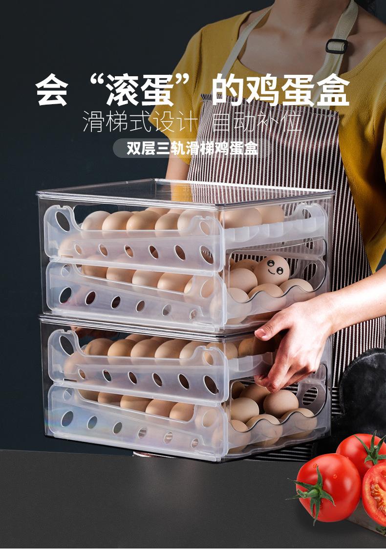 Caja de Almacenamiento de Huevos Transparente Tipo Deslizante Recipiente Crujiente para Huevos Refrigerador de Cocina Bandeja Rodante para Huevos Multi-Rejillas Caja Creativa para Huevos