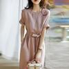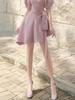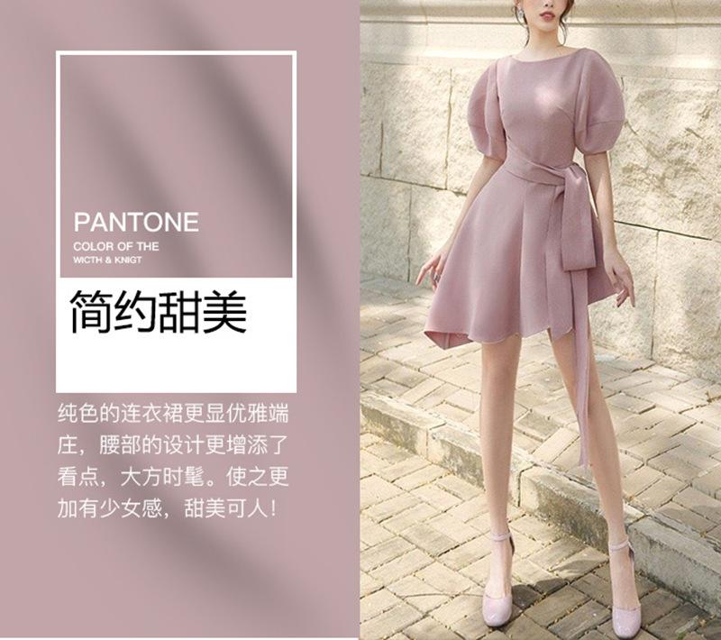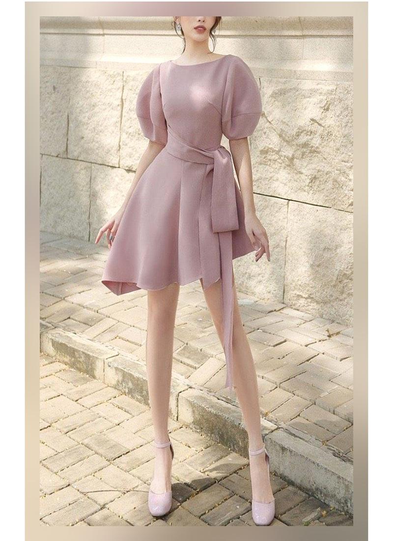 Vestido rosa y morado de estilo vietnamita, nuevo vestido de celebridad, estilo retro francés, ajustado, con mangas abullonadas, estilo dulce 1289