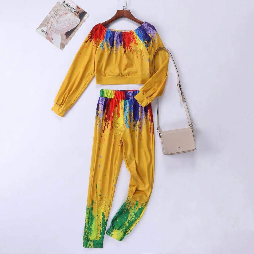 Traje de mujer con estampado digital tie-dye de moda otoño-invierno de Amazon AliExpress