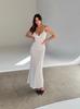 Vestido de perspectiva con costura de encaje y tirantes transfronterizos de comercio exterior para mujer, estilo europeo y americano, ajustado, de color sólido, sin espalda y sexy.