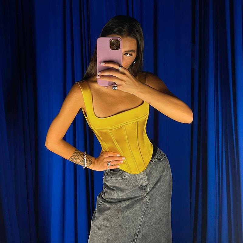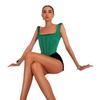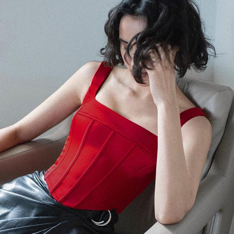 Camisola sin tirantes de espiga de pescado, sexy, elegante, de color sólido, con cuello cuadrado, sin mangas, ajustada, para mujer, primavera y verano 2024
