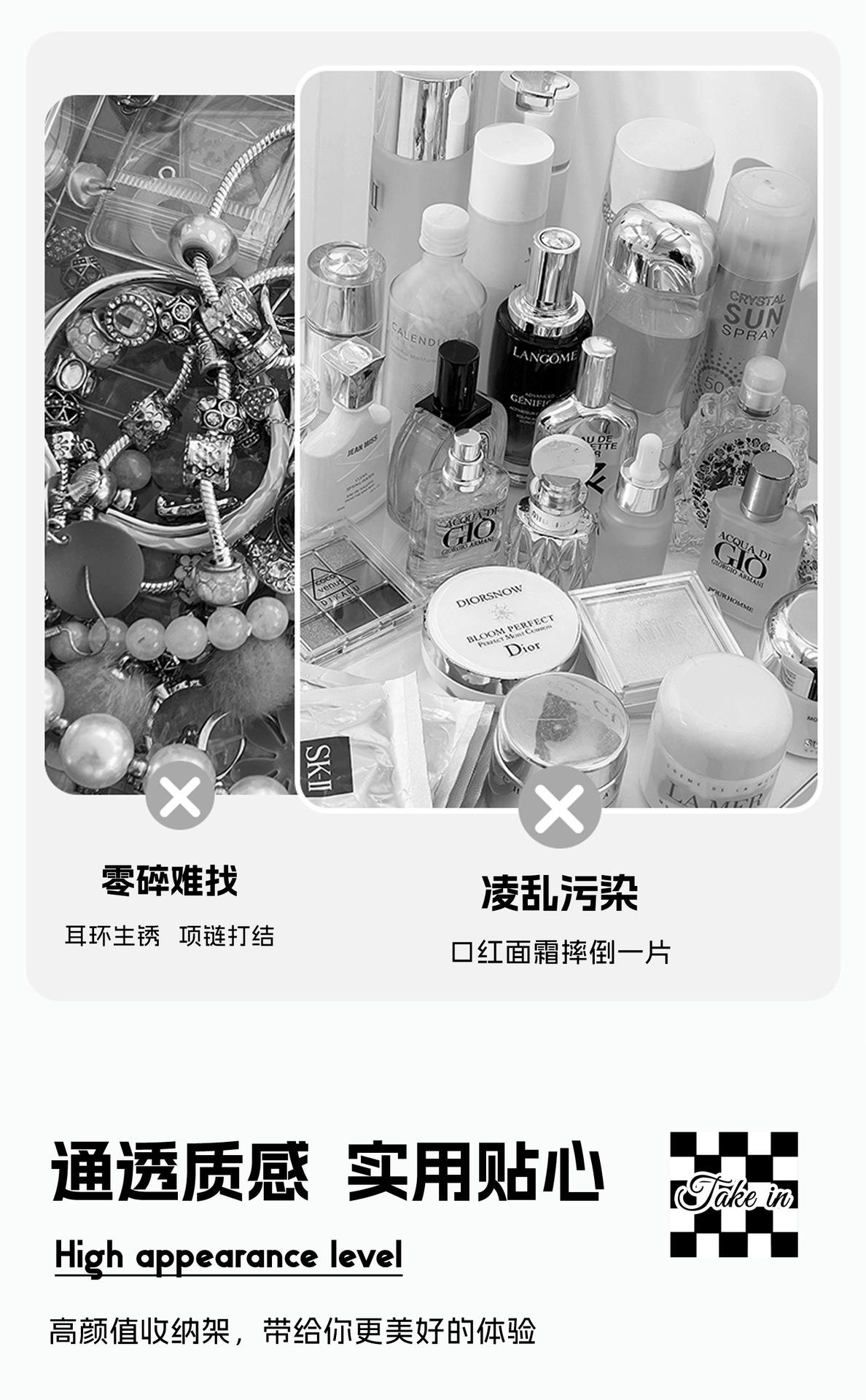 Tocador de dormitorio sin perforaciones Estante de almacenamiento de joyas Multifuncional Simple Creativo de Escritorio Estante de almacenamiento de aretes y collares