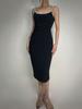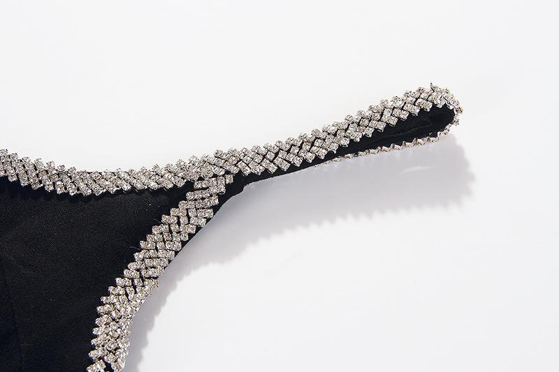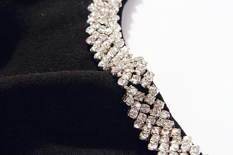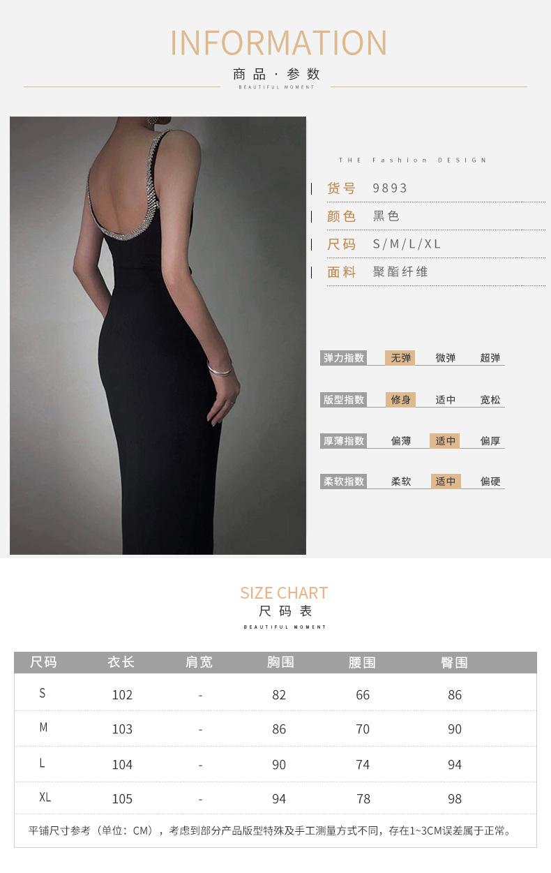 Vestido Negro Sexy con Tirantes de Pedrería Femenino sin Espalda Ajustado Lujo Ligero Fiesta Banquete Vestido 9893