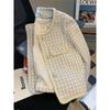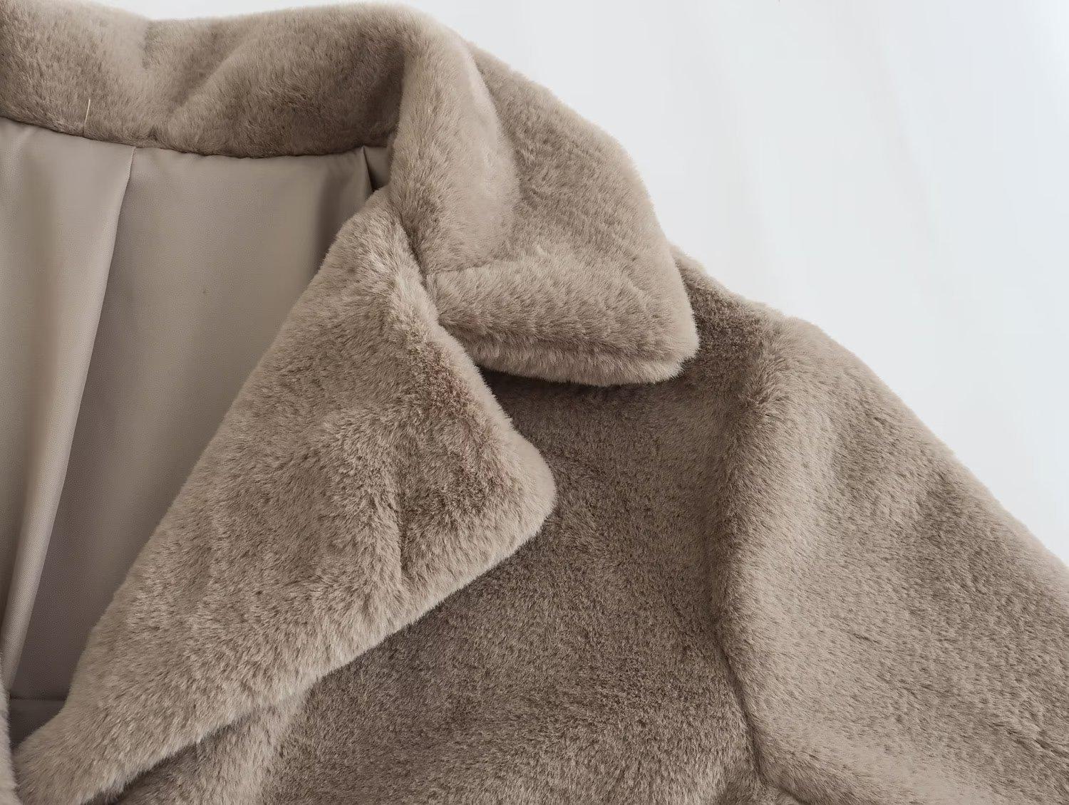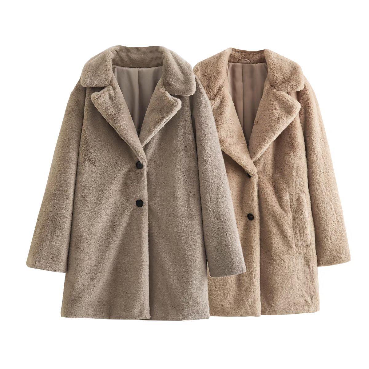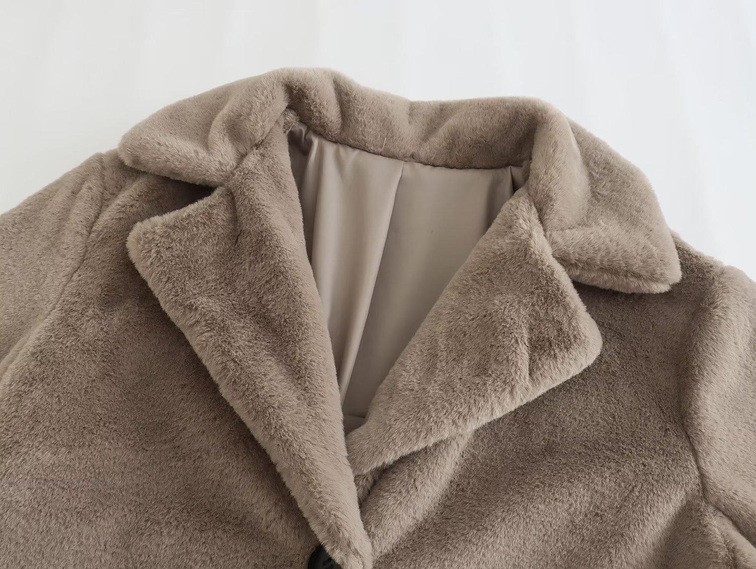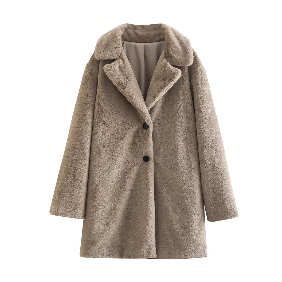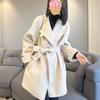 Chaqueta gruesa de invierno 2023 para mujer, estilo europeo y americano, con solapa, color liso, combinable con todo, con dos hebillas y longitud media.